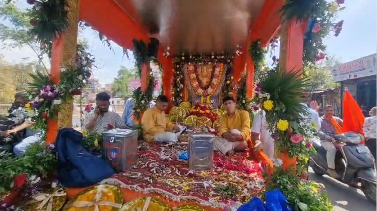 અમદાવાદના આંગણે હનુમાન જન્મોત્સવના પાવન પર્વ પૂર્વે ભક્તિ અને શક્તિનો અનોખો સંગમ જોવા મળ્યો હતો, જ્યારે શહેરના સુપ્રસિદ્ધ કેમ્પ હનુમાન મંદિર ખાતેથી એક અત્યંત ભવ્ય અને આકર્ષક શોભાયાત્રાનું આયોજન કરવામાં આવ્યું હતું. આ પવિત્ર યાત્રાનો પ્રારંભ કરાવવા માટે રાજ્યના મુખ્યમંત્રી ભૂપેન્દ્ર પટેલ ખાસ ઉપસ્થિત રહ્યા હતા. મુખ્યમંત્રીએ વિધિવત રીતે પૂજા-અર્ચના કરી, શ્રીફળ વધેરી રથને પ્રસ્થાન કરાવી ભક્તોનો ઉત્સાહ બેવડાવ્યો હતો. આ પ્રસંગે કેમ્પ હનુમાન મંદિરનું વાતાવરણ 'જય શ્રી રામ' અને 'જય હનુમાન'ના ગુંજારવથી ગાજી ઉઠ્યું હતું અને મોટી સંખ્યામાં શ્રદ્ધાળુઓ દાદાના દર્શન અને આ યાત્રામાં સહભાગી થવા માટે ઉમટી પડ્યા હતા.