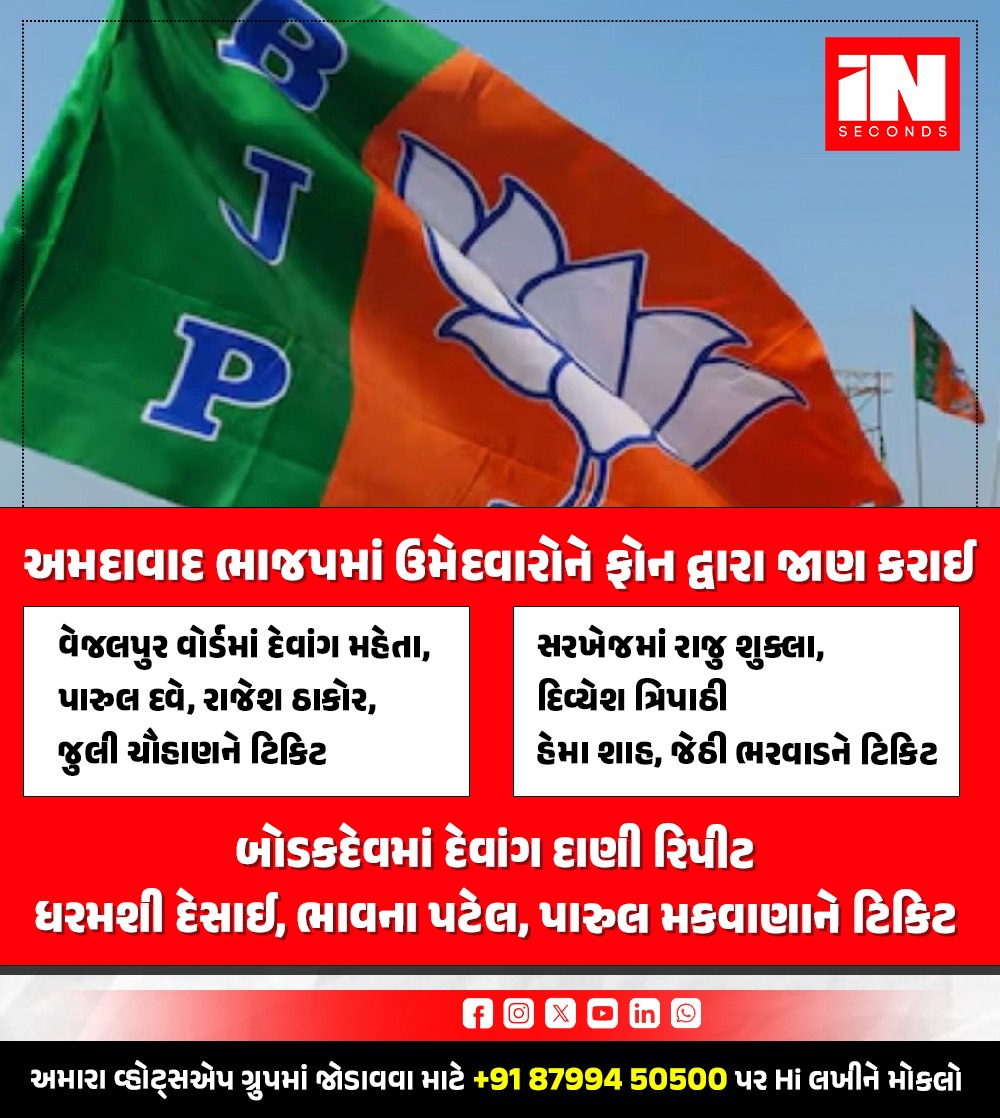 સસ્પેન્સનો અંત! અમદાવાદ મનપાની ચૂંટણી માટે ભાજપના ઉમેદવારો તૈયાર, 'ટેલિફોનિક' જાણ કરી રણશિંગુ ફૂંકાયું, જાણો કોને મળી ટિકિટ