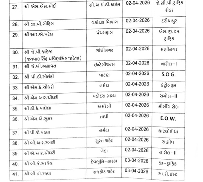 અમદાવાદ શહેરના આંતરિક માળખામાં કરવામાં આવેલા ફેરફારો પર નજર કરીએ તો, સાયબર ક્રાઈમમાં ફરજ બજાવતા એસ.આર. ઝાલાને ગાયકવાડ હવેલી અને ઇકોનોમિક ઓફેન્સ વિંગ (EOW)માંથી એસ.એમ. ચૌધરીને રખિયાલ પોલીસ સ્ટેશનમાં મૂકવામાં આવ્યા છે. તેવી જ રીતે, વસ્ત્રાપુર અને કારંજ જેવા અગત્યના વિસ્તારોમાં પણ નવા PIની નિમણૂક કરવામાં આવી છે. લાંબા સમયથી જે અધિકારીઓ સાઈડ પોસ્ટિંગ ગણાતી શાખાઓમાં હતા, તેઓને હવે મુખ્ય ધારાના પોલીસ સ્ટેશનોમાં લાવવામાં આવ્યા છે. આ બદલી પ્રક્રિયામાં ટ્રાફિક વિભાગ અને સ્પેશિયલ બ્રાન્ચમાં પણ મોટા પાયે ફેરફારો જોવા મળ્યા છે, જેનો મુખ્ય ઉદ્દેશ્ય શહેરની કાયદો અને વ્યવસ્થાની સ્થિતિને વધુ મજબૂત બનાવવાનો છે.