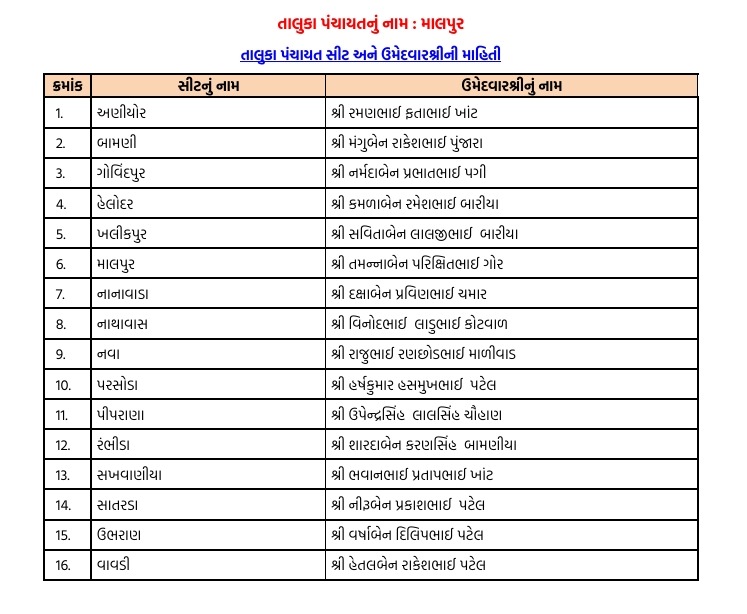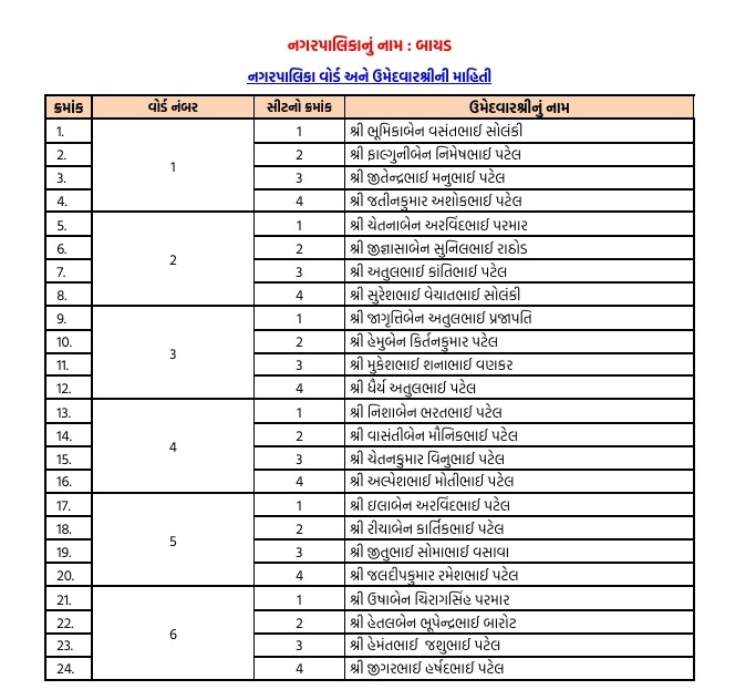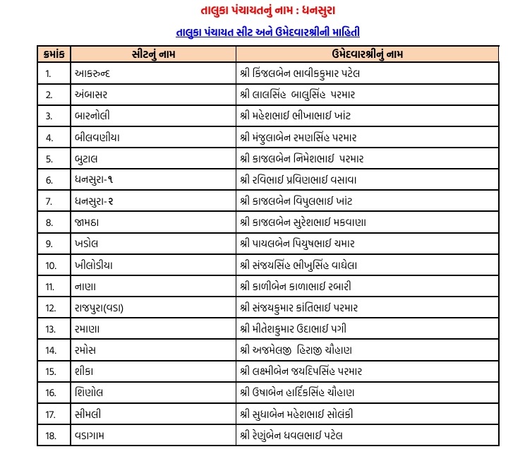 નોંધનીય છે કે અરવલ્લી જિલ્લામાં મોડાસા, બાયડ, ધનસુરા, માલપુર અને મેઘરજ જેવા મહત્વના તાલુકાઓમાં સત્તા કબજે કરવા માટે ભાજપે આ વખતે નવા અને યુવા ચહેરાઓને પણ તક આપી છે, જેની સાથે અનુભવી નેતાઓના નામ પણ યાદીમાં સામેલ છે. હવે આગામી દિવસોમાં આ ઉમેદવારો દ્વારા ફોર્મ ભરવાની પ્રક્રિયા હાથ ધરવામાં આવશે. વિપક્ષી છાવણીમાં હજુ મથામણ ચાલી રહી છે ત્યારે ભાજપે વહેલી તકે નામો જાહેર કરીને પ્રચારમાં સરસાઈ મેળવવાનો પ્રયાસ કર્યો છે. ગ્રામીણ સ્તરે સરકારની યોજનાઓ પહોંચાડવામાં જે લોકોની સક્રિય ભૂમિકા રહી છે, તેમને આ યાદીમાં વિશેષ સ્થાન મળ્યું હોવાનું ચર્ચાઈ રહ્યું છે.