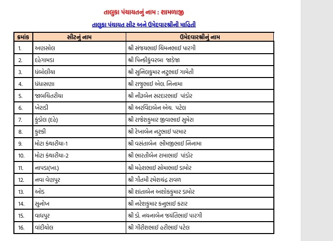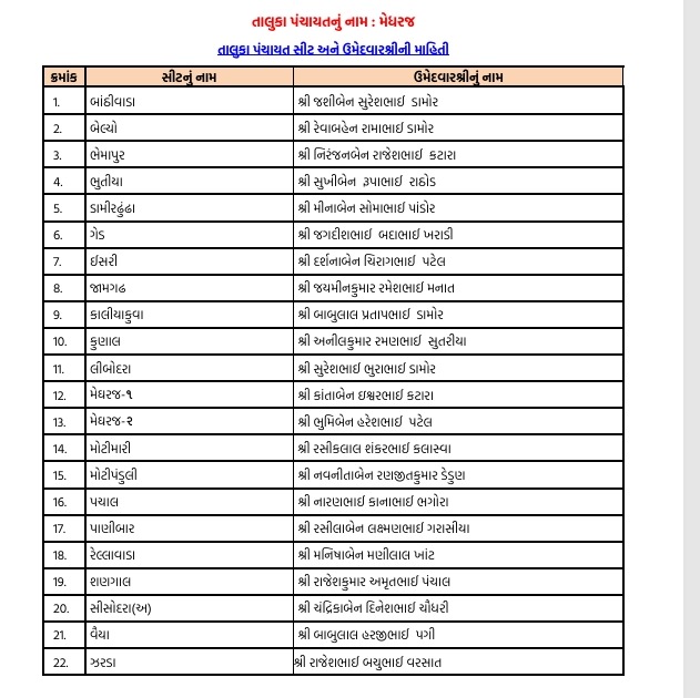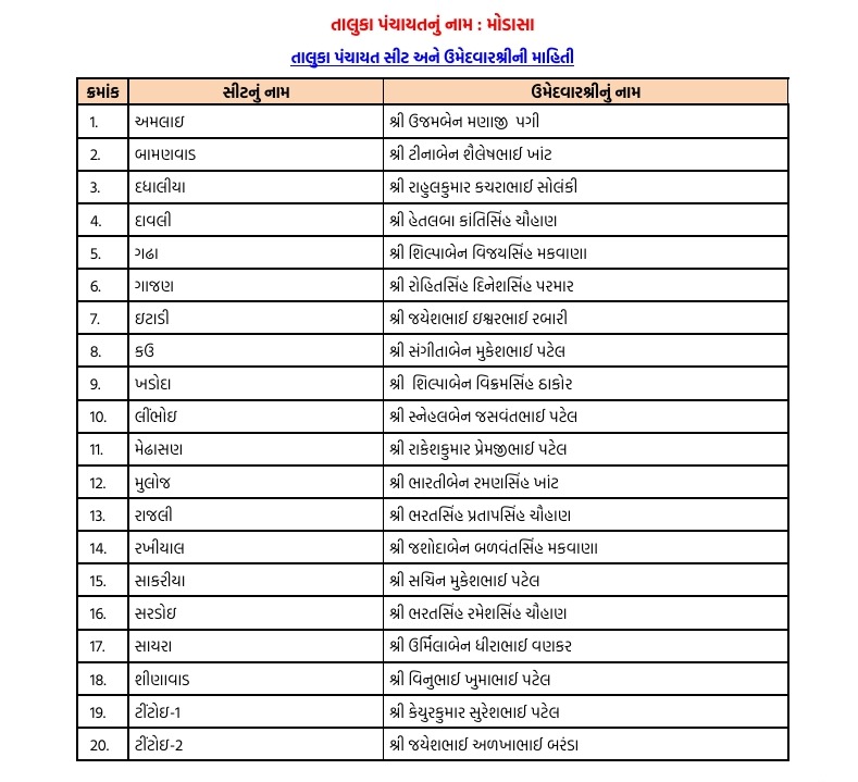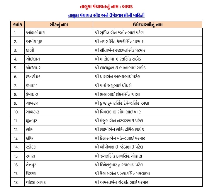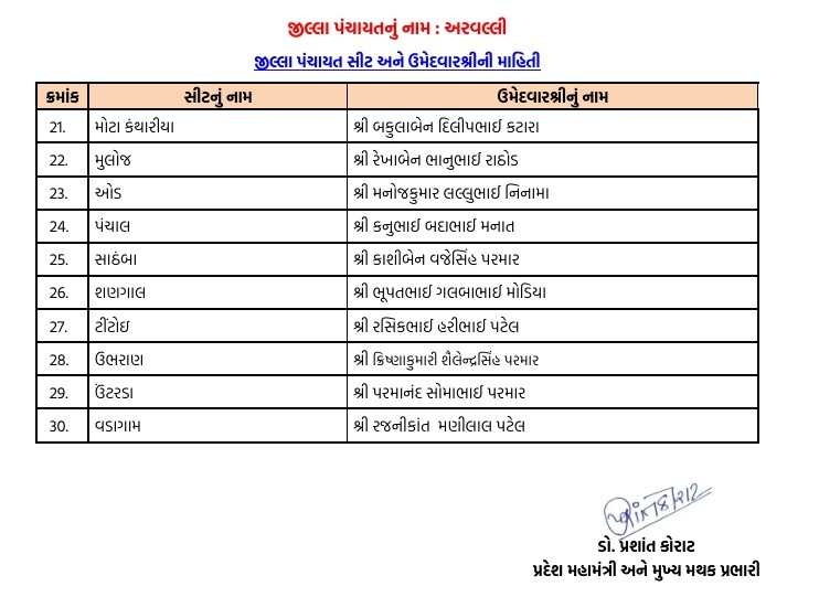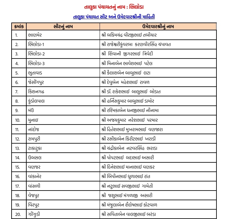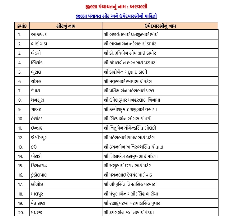 અરવલ્લીમાં ભાજપે ફૂંક્યું ચૂંટણીનું રણશિંગું : જિલ્લા-તાલુકા પંચાયત માટે ઉમેદવારો ફાઈનલ, અહીં તપાસો તમારી બેઠકના ઉમેદવાર...