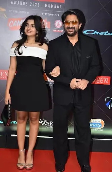 બોલિવૂડના વર્સેટાઇલ એક્ટર અરશદ વારસી હંમેશા પોતાની એક્ટિંગથી ચાહકોના દિલ જીતતા આવ્યા છે, પરંતુ તાજેતરમાં મુંબઈમાં આયોજિત એક ઇવેન્ટમાં બધી જ નજર અરશદ પર નહીં પણ તેની દીકરી ઝેન જોઈ વારસી પર ટકી હતી. પહેલીવાર પોતાની દીકરી સાથે રેડ કાર્પેટ પર દેખાયેલા અરશદ વારસીની દીકરીની સુંદરતા અને સ્ટાઇલિશ લુક જોઈને સોશિયલ મીડિયા પર ફેન્સ આશ્ચર્યચકિત થઈ ગયા છે. ઇવેન્ટ દરમિયાન અરશદ વારસી 'ઓલ બ્લેક' સૂટમાં અત્યંત ડેશિંગ અને ક્લાસી લુકમાં જોવા મળ્યો હતો. તેણે બ્લેક બ્લેઝર, ટ્રાઉઝર અને બ્રાઉન ચશ્મા સાથે પોતાની પર્સનાલિટીમાં ચાર ચાંદ લગાવ્યા હતા.