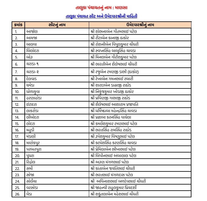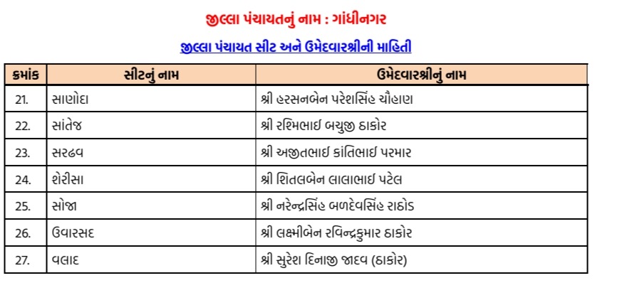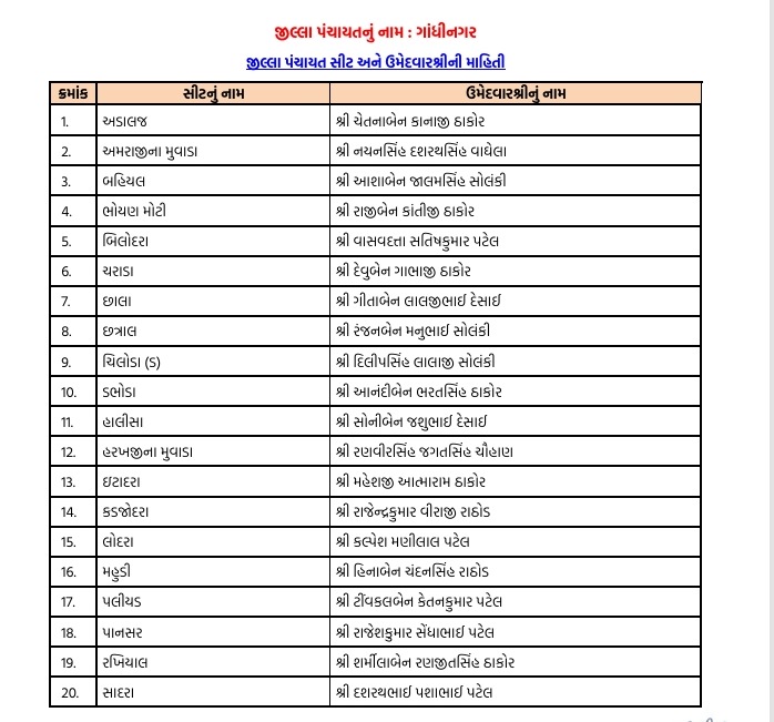 સ્થાનિક સ્વરાજ્યની ચૂંટણી : ગાંધીનગર જિલ્લા, નગરપાલિકા અને તાલુકા પંચાયતની ચૂંટણી માટે ભાજપની યાદી તૈયાર, ઉમેદવારોના નામ જાહેર...