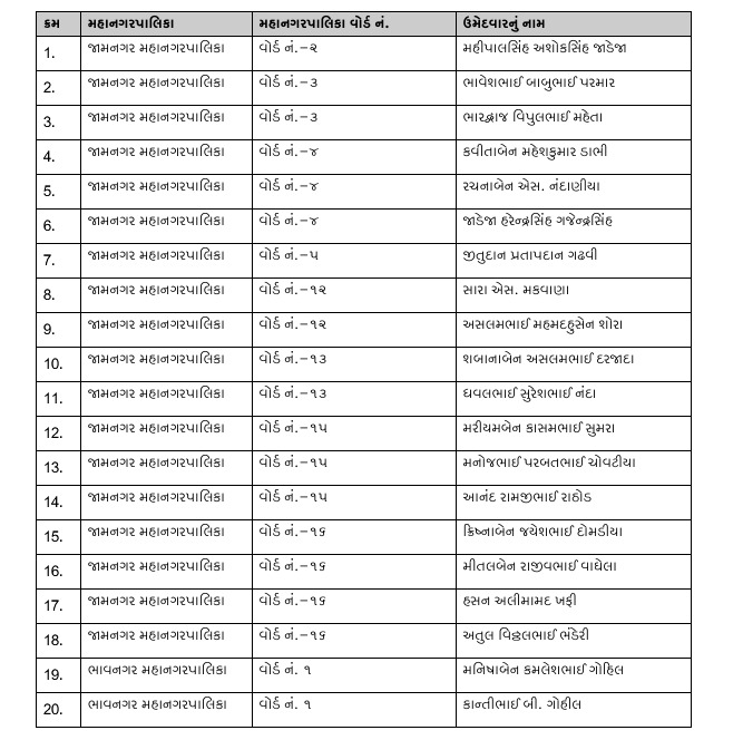 ગુજરાત સ્થાનિક સ્વરાજ્યની ચૂંટણી : કોંગ્રેસ દ્વારા ઉમેદવારોની પ્રથમ યાદી જાહેર, જાણો કોને મળી ટિકિટ?