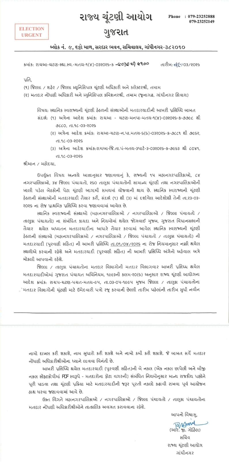 સ્થાનિક સ્વરાજ્યની ચૂંટણી: 1 એપ્રિલના રોજ આખરી મતદાર યાદી પ્રસિદ્ધ થશે, ગમે ત્યારે વાગી શકે છે ચૂંટણીનું બ્યુગલ