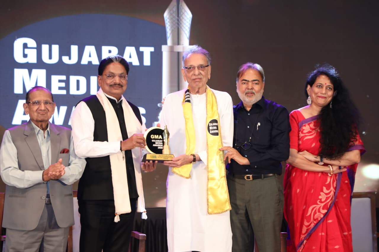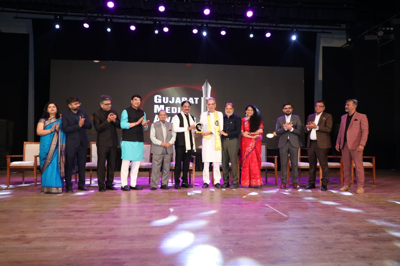 અમદાવાદના પાલડી સ્થિત ટાઉનહોલ ખાતે તાજેતરમાં ‘ગુજરાત મીડિયા એવોર્ડ 2026’ નું આયોજન કરવામાં આવ્યું હતું. કેબિનેટ મંત્રી ઋષિકેશ પટેલની ઉપસ્થિતિમાં યોજાયેલા આ કાર્યક્રમમાં મીડિયા ક્ષેત્રે વિશિષ્ટ પ્રદાન કરનારા પત્રકારો અને મીડિયાકર્મીઓને સન્માનિત કરવામાં આવ્યા હતા. આ પ્રસંગે વરિષ્ઠ પત્રકાર પદ્મશ્રી દેવેન્દ્ર પટેલને પત્રકારત્વમાં તેમની અમૂલ્ય સેવાઓ બદલ ‘લાઇફટાઇમ એચિવમેન્ટ એવોર્ડ’ એનાયત કરીને વિશેષ બહુમાન કરવામાં આવ્યું હતું.