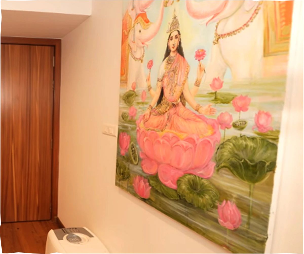 જેકી શ્રોફનું લિવિંગ રૂમ એટલું વિશાળ છે કે જોઈને આંખો ફાટી જાય. દીવાલ પર લક્ષ્મી માતાની સુંદર પેઈન્ટિંગ લગાવેલી છે, જે કૃષ્ણાની માતાએ બનાવી છે.