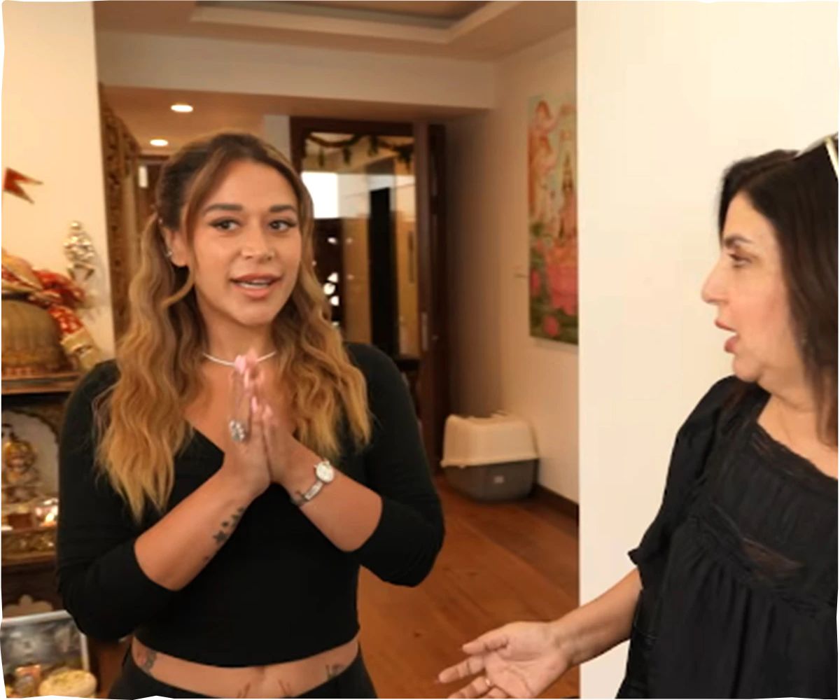 ઘરમાં પગ મૂકતાં જ ફરાહ ખાન ઘરની અદ્ભુત સજાવટ જોઈને ચોંકી ગયાં. તેમણે કૃષ્ણા શ્રોફને કહ્યું, “કેવું ઘર બનાવ્યું છે તમે લોકોએ!” કૃષ્ણાએ જણાવ્યું કે, તેઓ ભાઈ ટાઈગર શ્રોફ અને મમ્મી-પાપા સાથે આ ઘરમાં રહે છે.