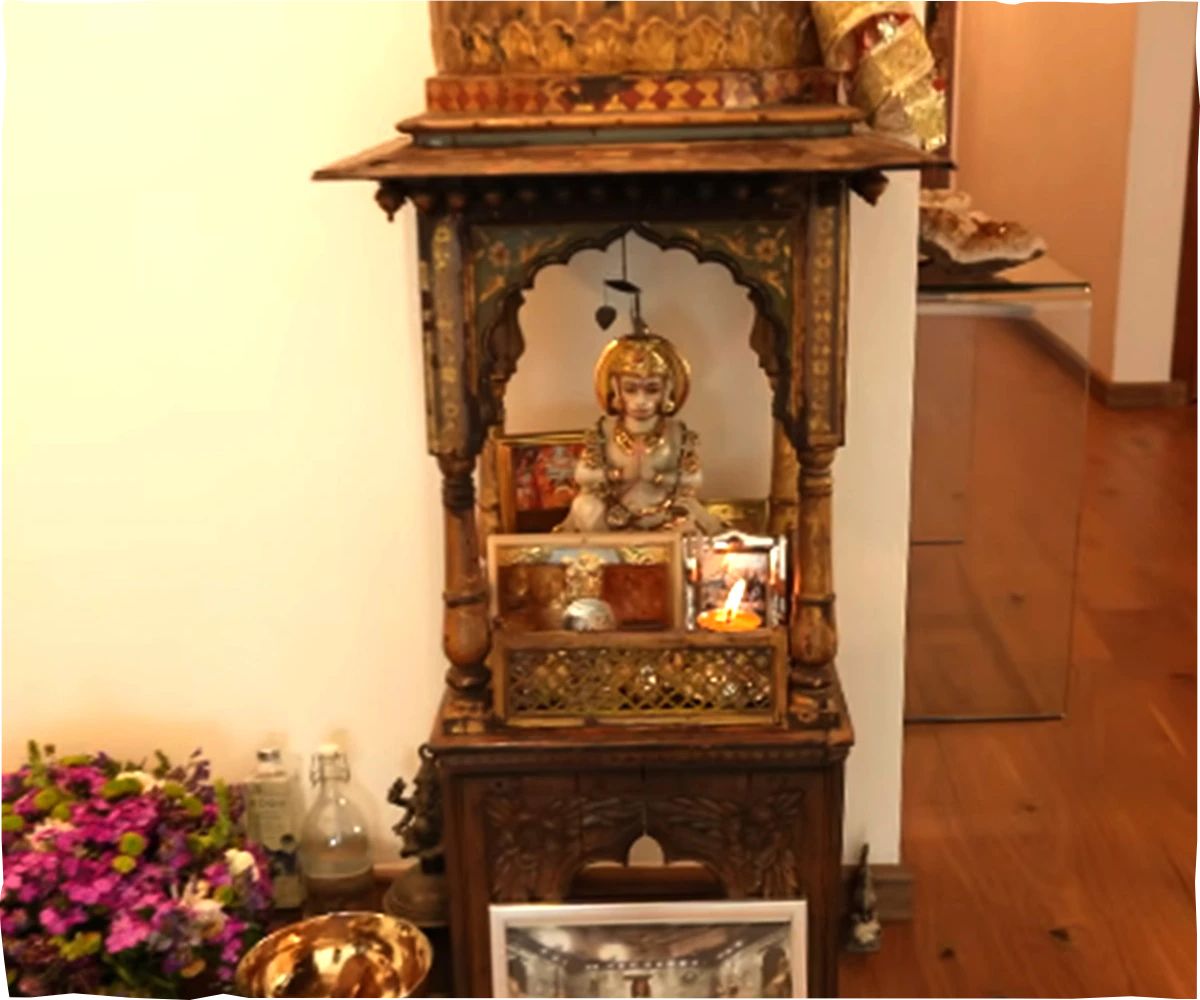 ઘરમાં એક નાનકડો પરંતુ અત્યંત સુંદર મંદિર છે, જેમાં હનુમાનજીની મૂર્તિ સ્થાપિત છે. આ મંદિરનો વિસ્તાર શાંતિ અને સુકૂન આપે છે.