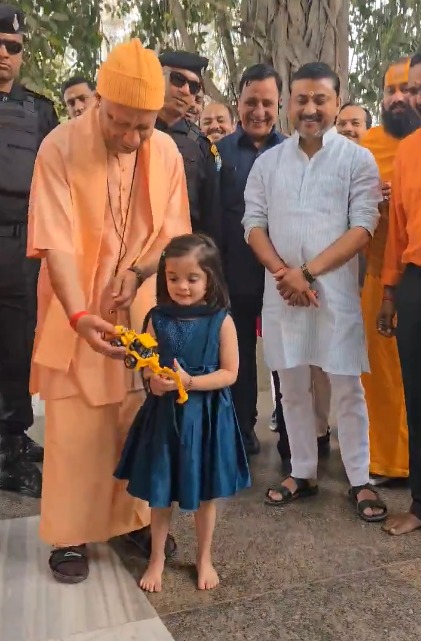 મુખ્યમંત્રી યોગી આદિત્યનાથ હાલમાં પોતાના બે દિવસીય ગોરખપુર પ્રવાસ પર છે, જ્યાં સવાર અત્યંત રમણીય અને આશ્ચર્યજનક રહી હતી. ગોરખનાથ મંદિર પરિસરમાં જ્યારે મુખ્યમંત્રી ભ્રમણ કરી રહ્યા હતા, ત્યારે કાનપુરથી આવેલી 5 વર્ષની માસૂમ બાળકી યશસ્વિનીએ સૌનું ધ્યાન ખેંચ્યું હતું. આ નાનકડી બાળકીએ મુખ્યમંત્રીને ફૂલ કે માળાને બદલે એક 'રમકડાનું બુલડોઝર' ભેટમાં આપ્યું હતું. આ દ્રશ્ય જોઈને માત્ર મુખ્યમંત્રી જ નહીં, પરંતુ ત્યાં હાજર તમામ સુરક્ષાકર્મીઓ અને અધિકારીઓ પણ હસી પડ્યા હતા. મુખ્યમંત્રીએ અત્યંત વહાલપૂર્વક બાળકીને પોતાની પાસે બોલાવી હતી અને તેની સાથે ફોટો પણ પડાવ્યો હતો. સામાન્ય રીતે કડક વહીવટ માટે જાણીતા યોગી આદિત્યનાથનો આ નરમ અને પ્રેમાળ અંદાજ સોશિયલ મીડિયા પર જોતજોતામાં વાઇરલ થઈ ગયો છે.