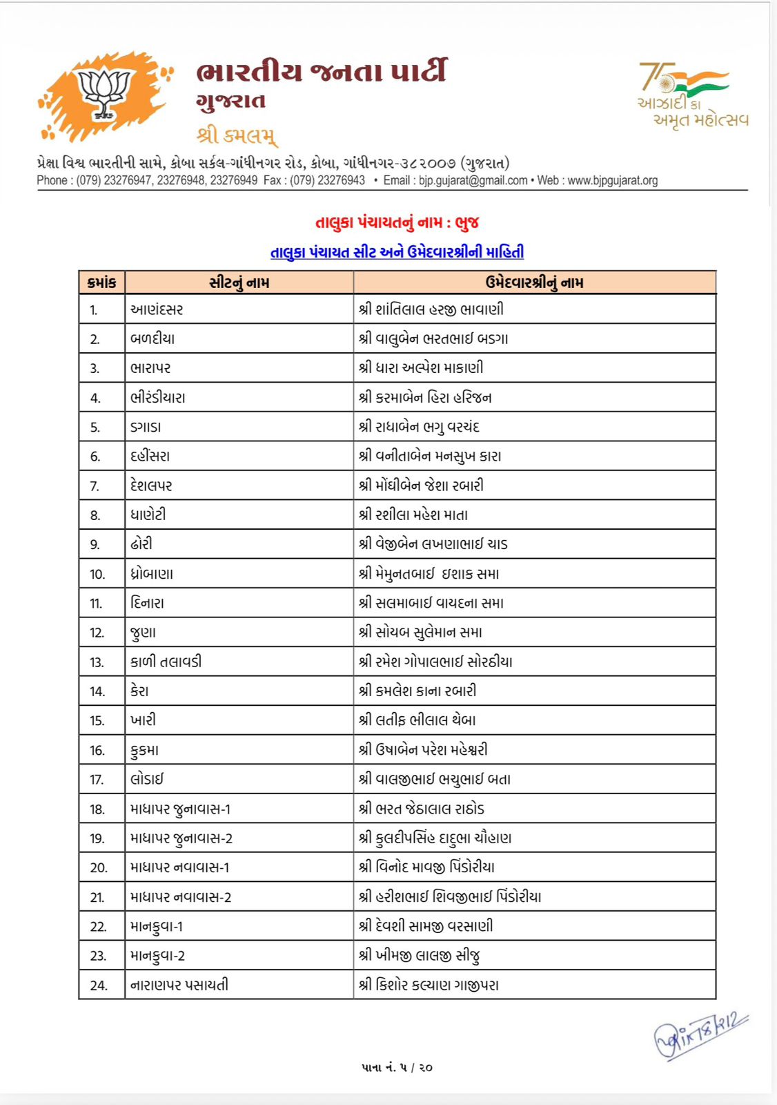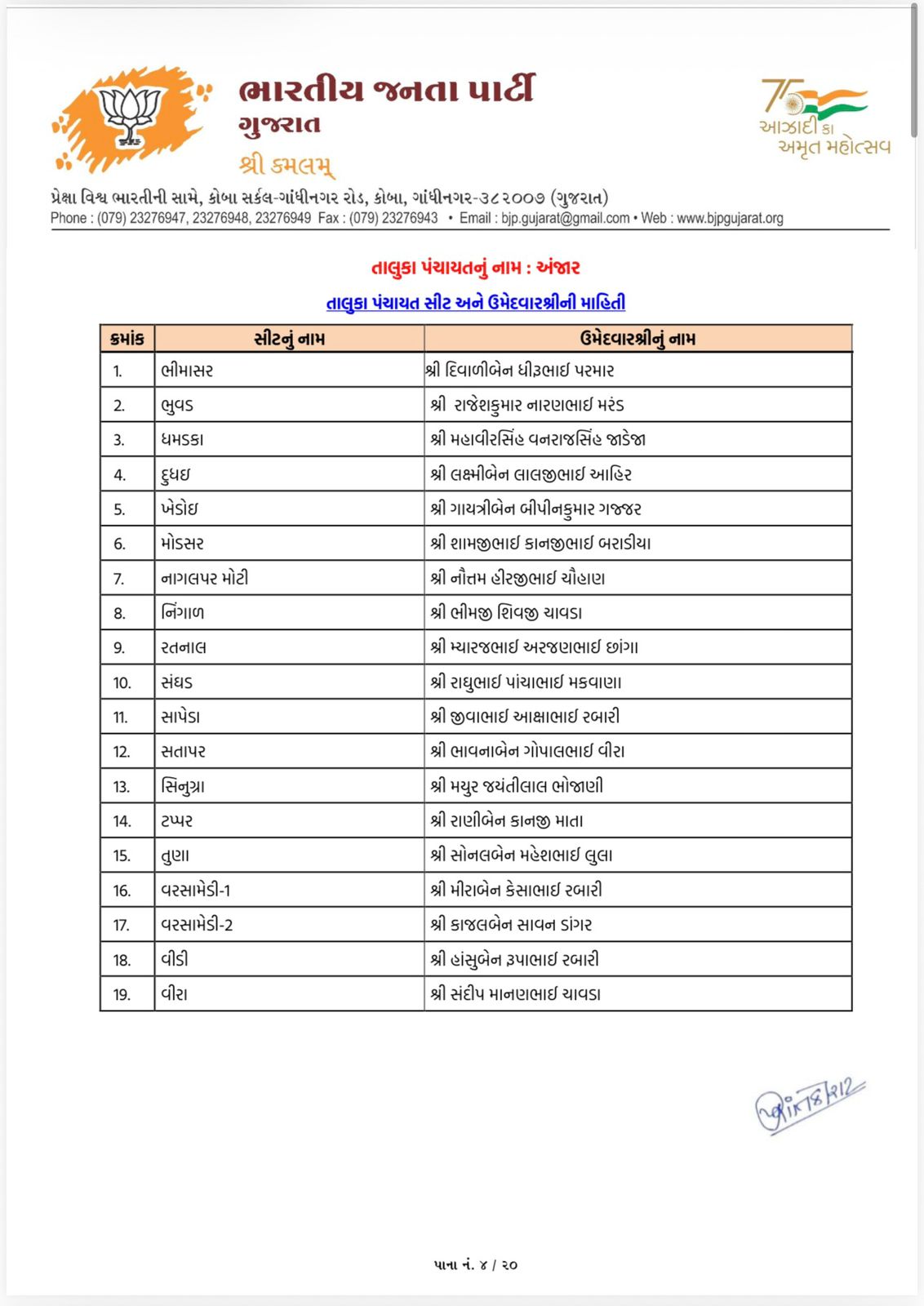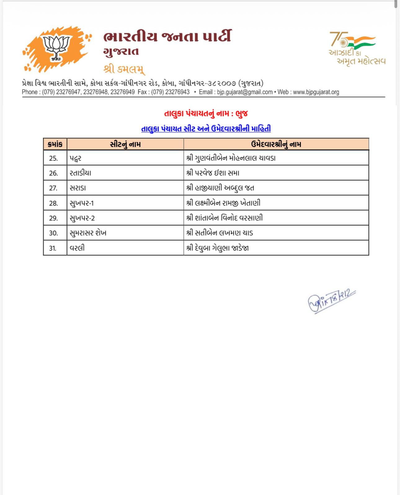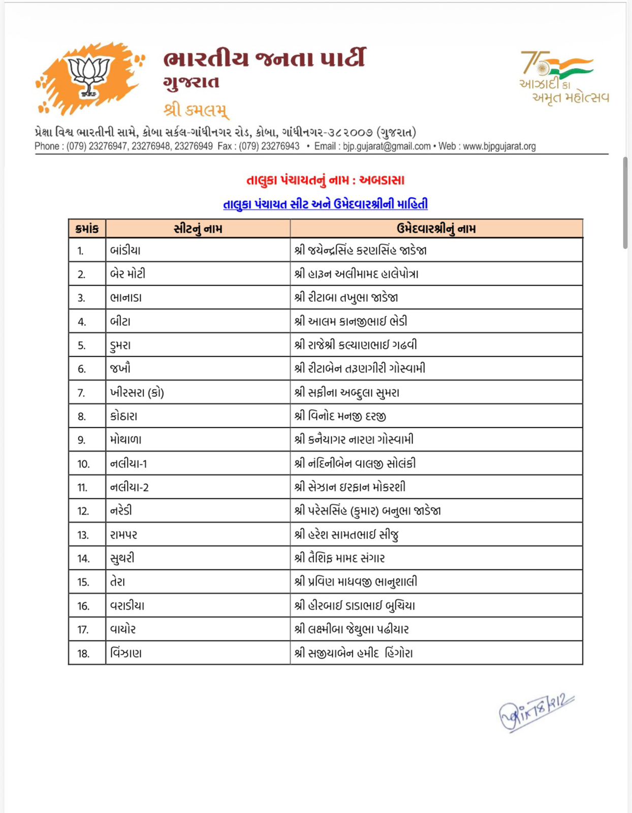 જુઓ કચ્છ જિલ્લા પંચાયત, તાલુકાપંચાયત અને નગરપાલિકાના ઉમેદવારોની સંપૂર્ણ યાદી...