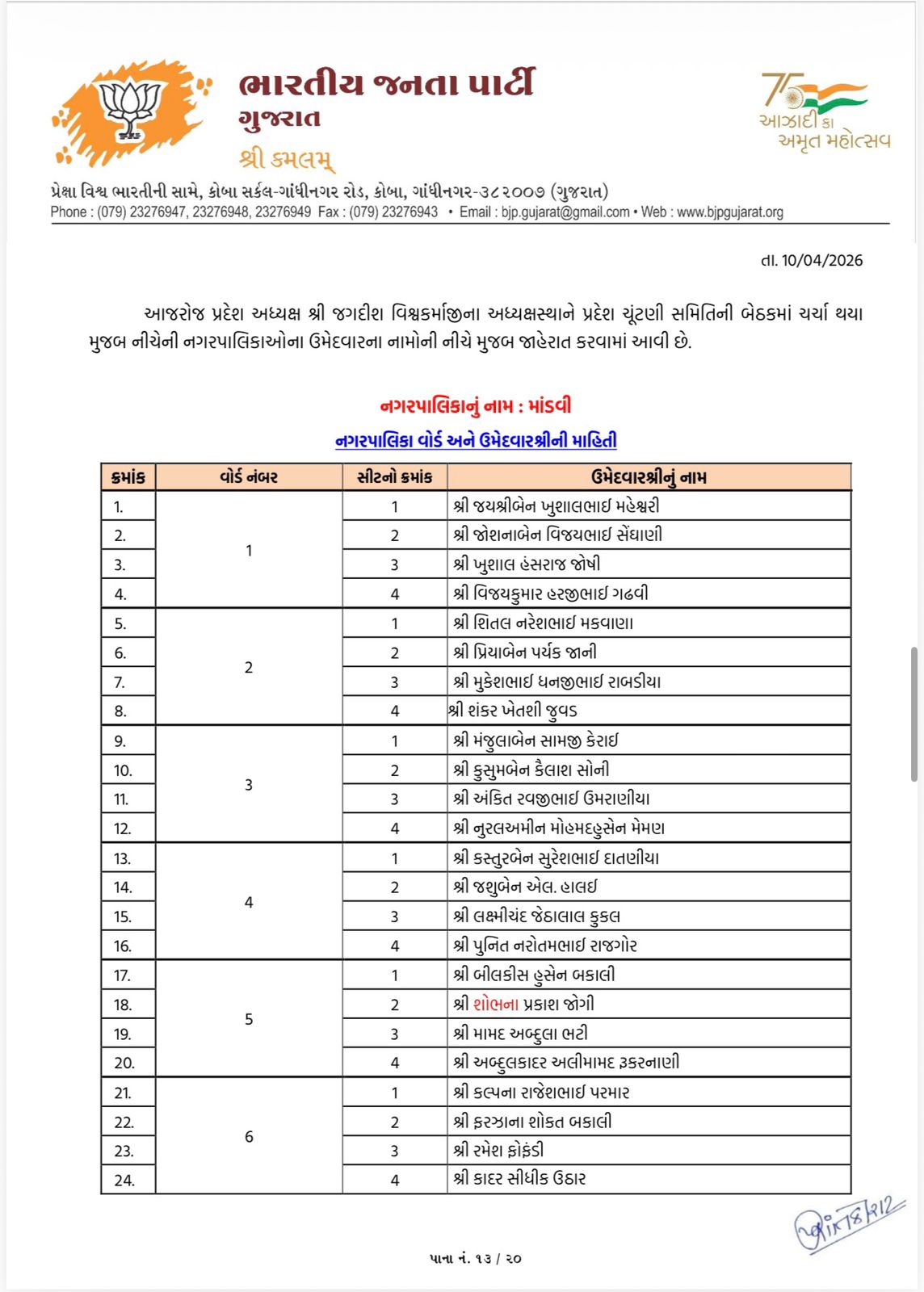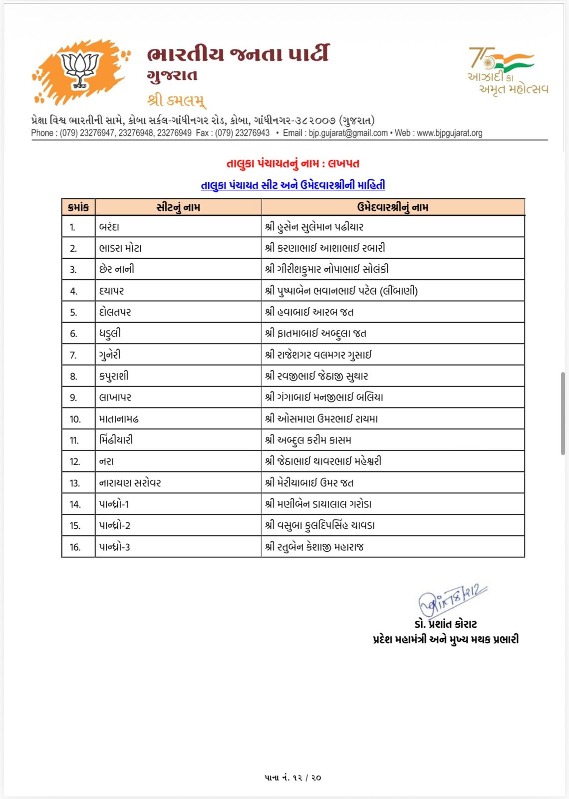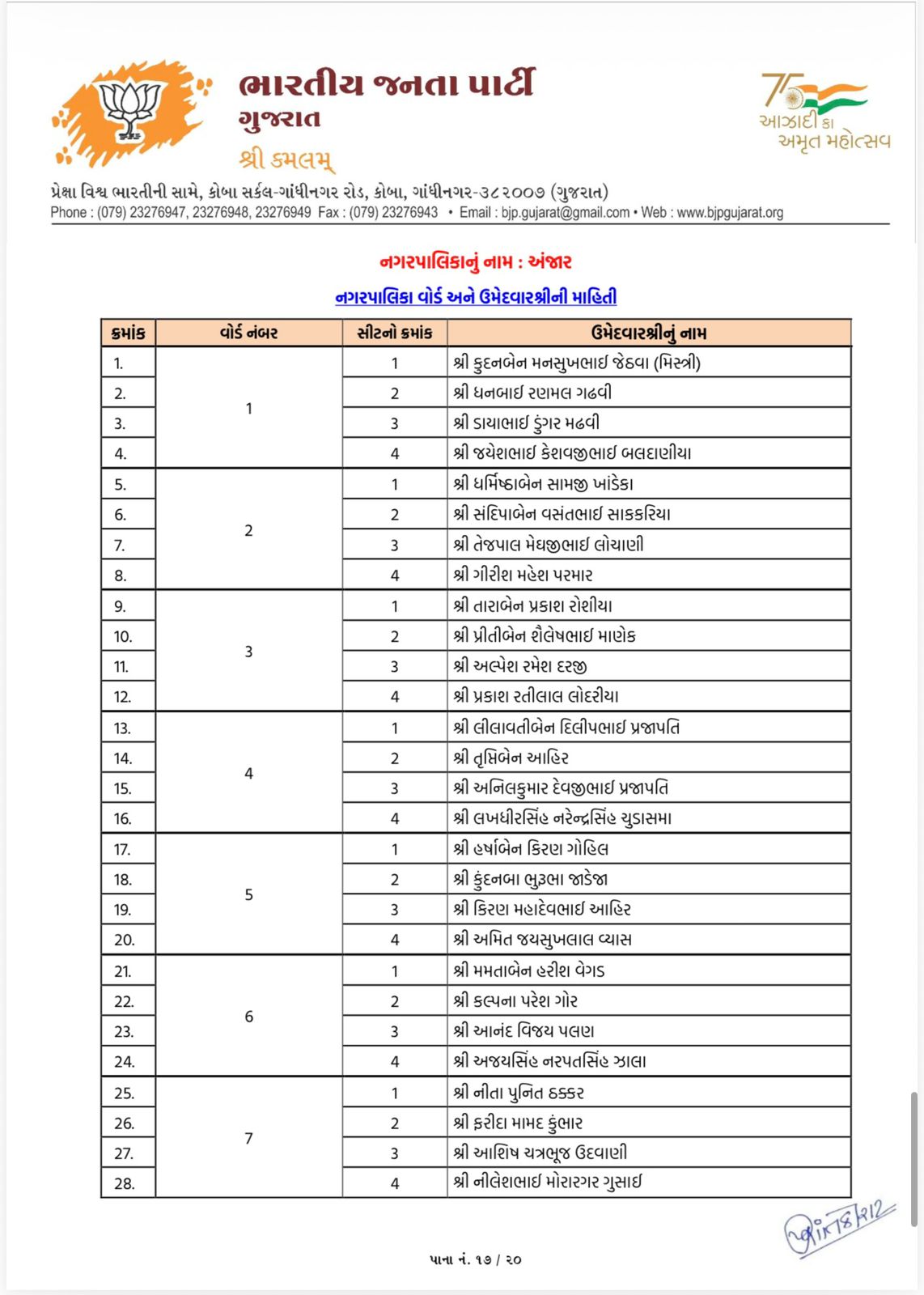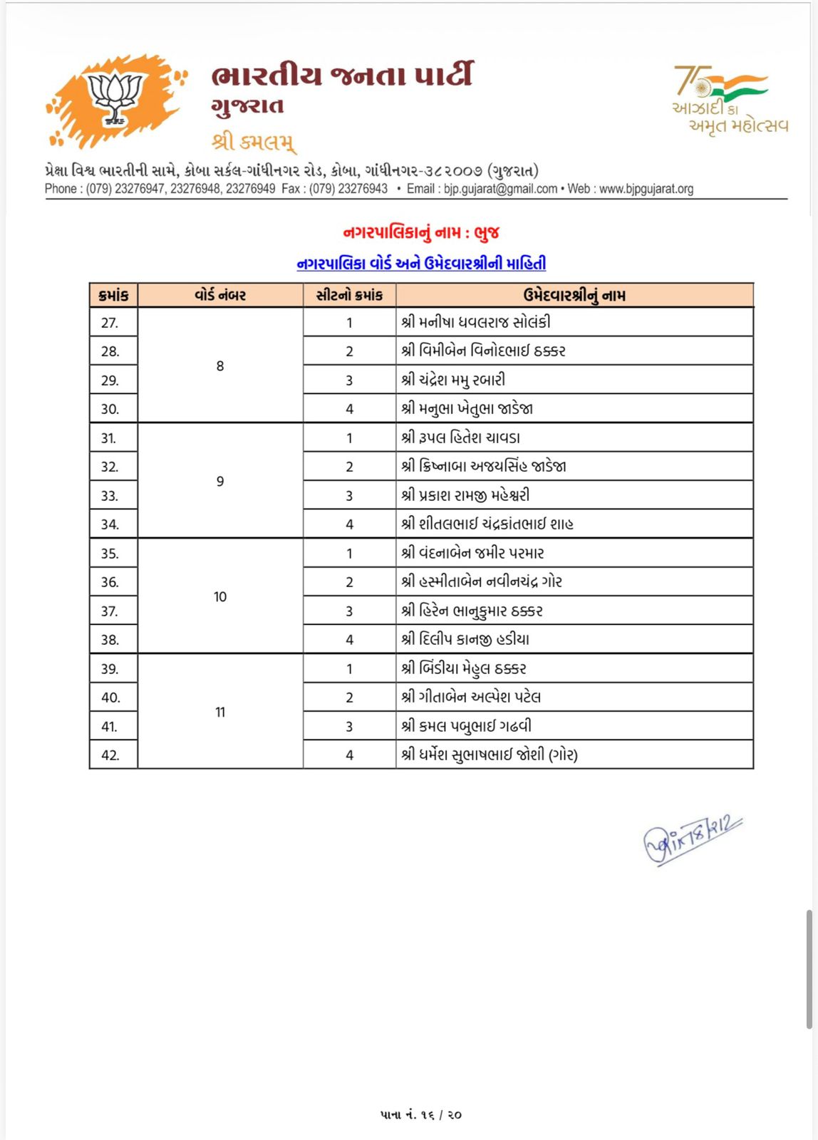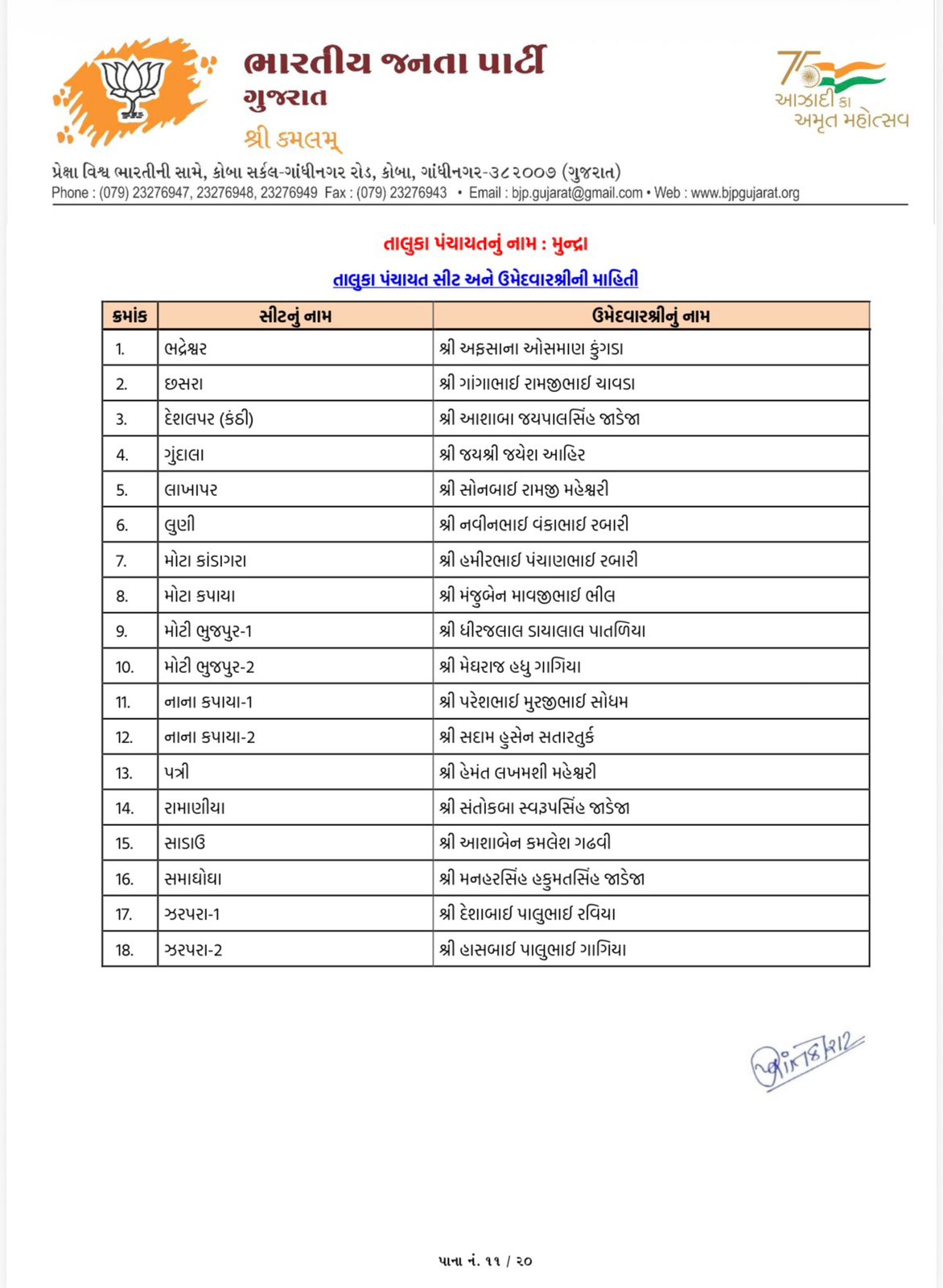 જુઓ કચ્છ જિલ્લા પંચાયત, તાલુકાપંચાયત અને નગરપાલિકાના ઉમેદવારોની સંપૂર્ણ યાદી...