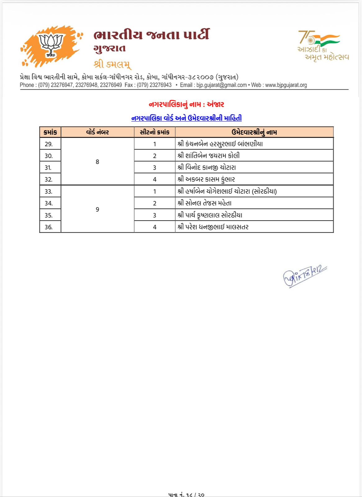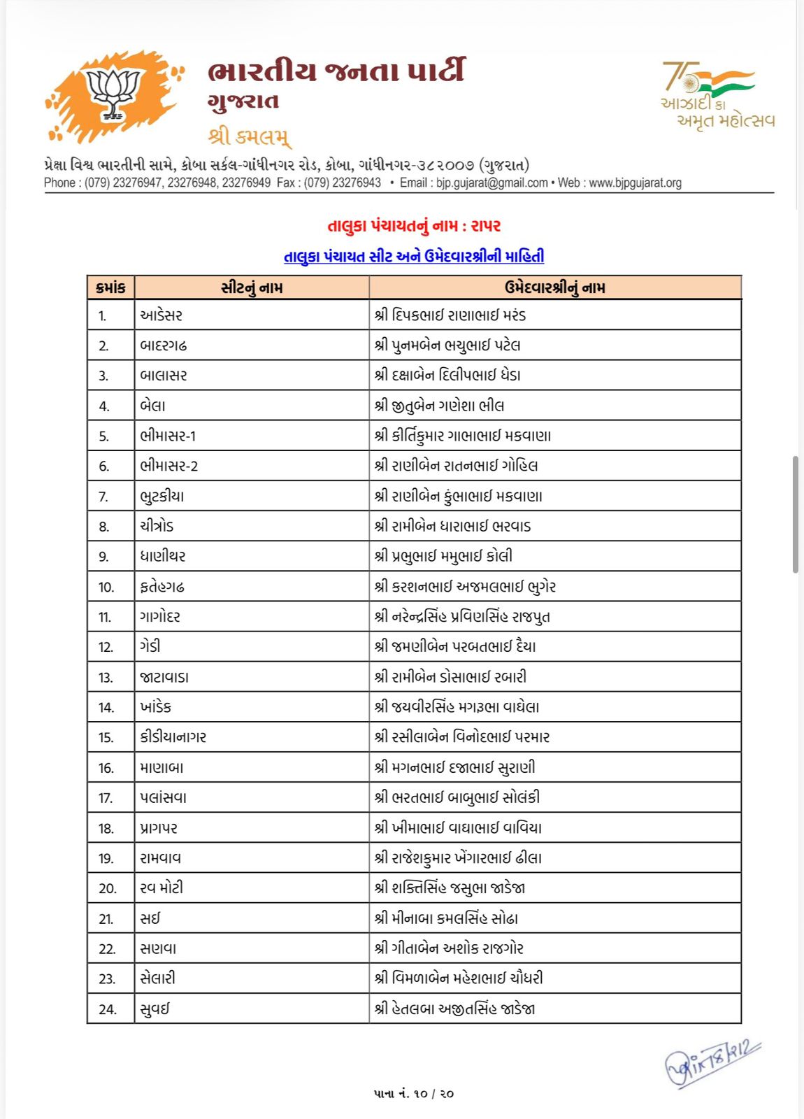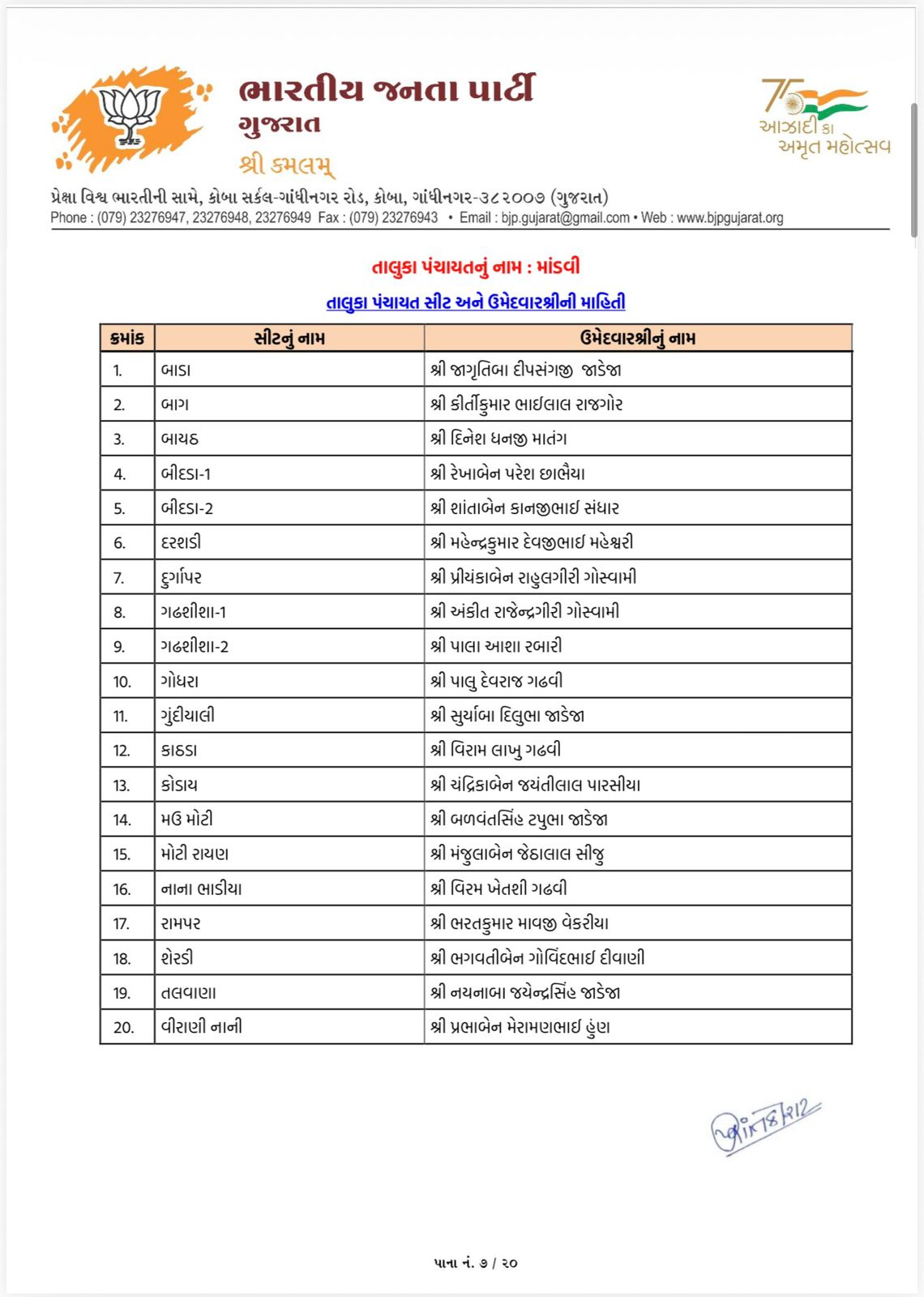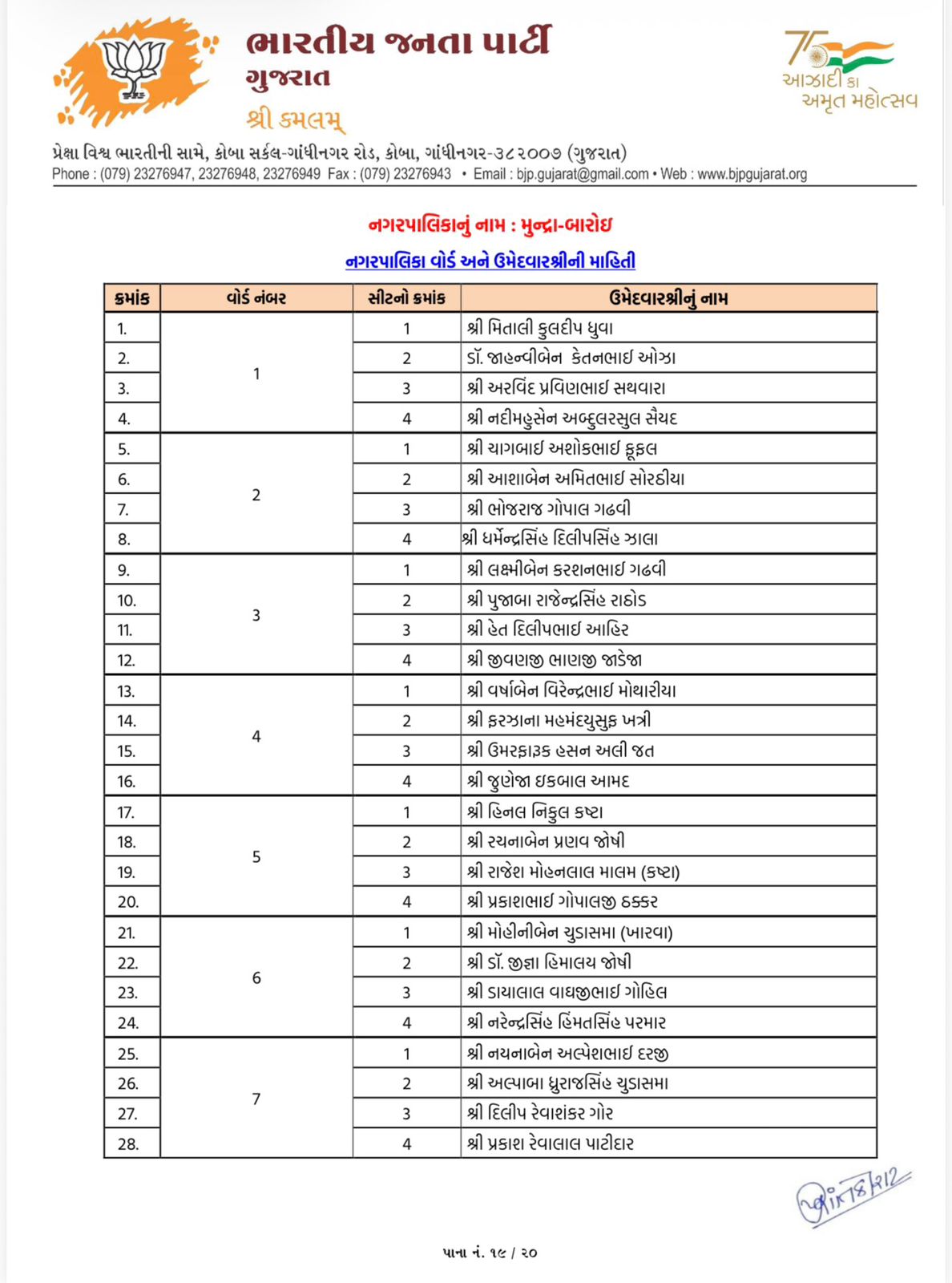 જુઓ કચ્છ જિલ્લા પંચાયત, તાલુકાપંચાયત અને નગરપાલિકાના ઉમેદવારોની સંપૂર્ણ યાદી...