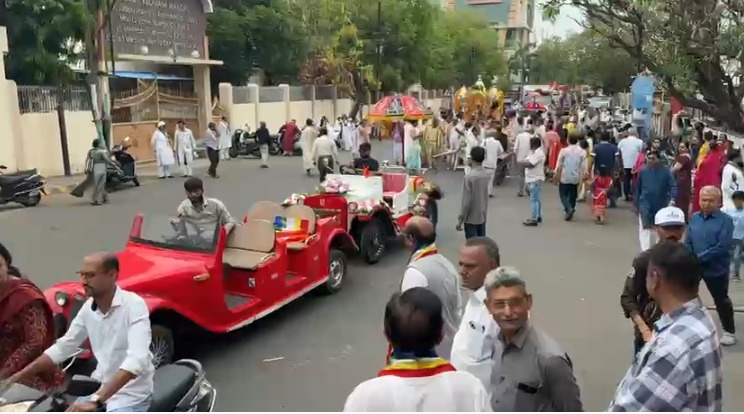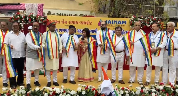 રાજકોટમાં આજે જૈન ધર્મના 24મા તીર્થંકર ભગવાન મહાવીર સ્વામીના જન્મ કલ્યાણકની અત્યંત હર્ષોલ્લાસ અને ભક્તિભાવપૂર્વક ઉજવણી કરવામાં આવી હતી. વહેલી સવારથી જ શહેરનું વાતાવરણ ધર્મમય બની ગયું હતું અને ‘ત્રિશલા નંદન વીર કી, જય બોલો મહાવીર કી’ના ગગનભેદી નાદથી રાજકોટના રાજમાર્ગો ગુંજી ઉઠ્યા હતા. શહેરના મધ્યમાં આવેલા ઐતિહાસિક મણિયાર દેરાસર ખાતેથી ભવ્ય શોભાયાત્રાનું પ્રસ્થાન કરાવવામાં આવ્યું હતું, જેમાં હજારોની સંખ્યામાં જૈન શ્રદ્ધાળુઓ પરંપરાગત વેશભૂષામાં ઉમટી પડ્યા હતા. આ શોભાયાત્રાએ રાજકોટના મુખ્ય માર્ગો પર આકર્ષણ જમાવ્યું હતું અને સમગ્ર શહેર અહિંસા પરમો ધર્મના રંગમાં રંગાયેલું જોવા મળ્યું હતું.