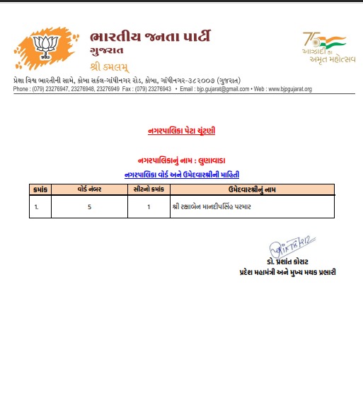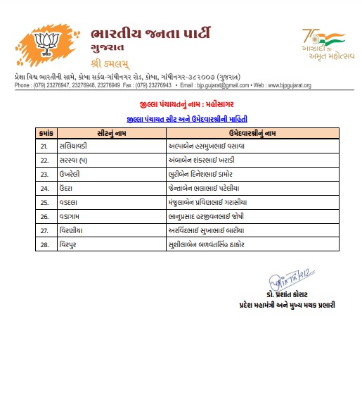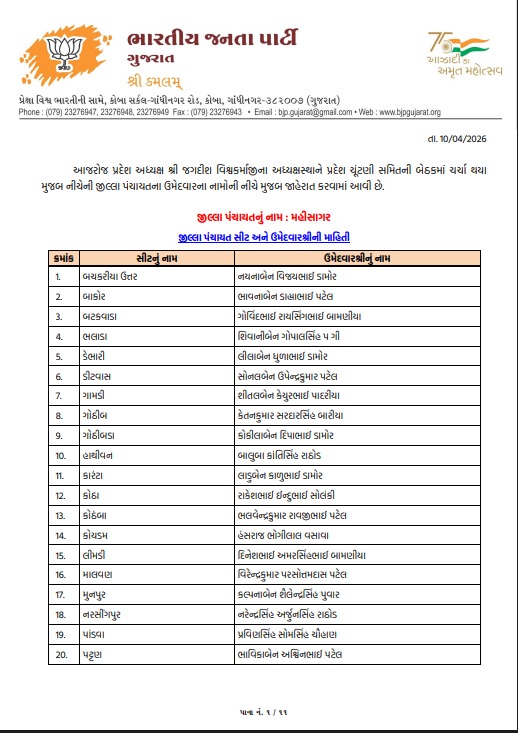 કેસરિયા બ્રિગેડ તૈયાર: મહીસાગરના તમામ વોર્ડમાં ભાજપની પેનલ જાહેર, નવા-જૂના જોગીઓ વચ્ચે ખરાખરીનો જંગ