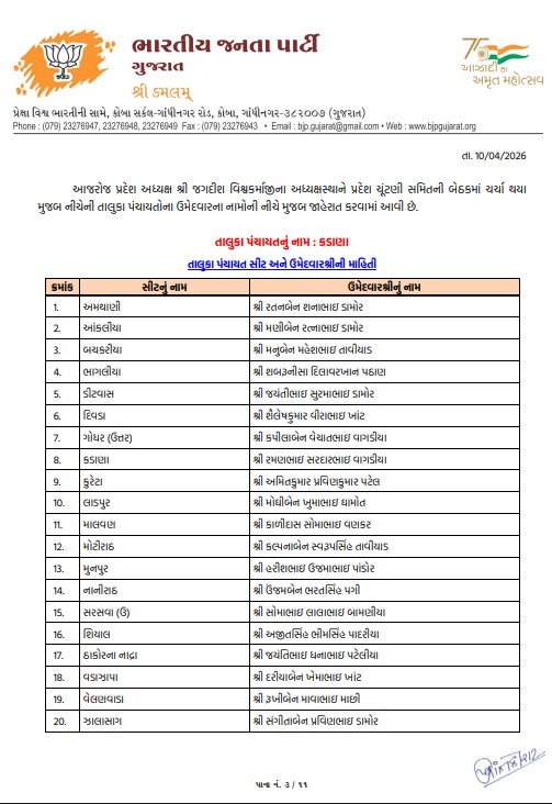પાલિકા-પંચાયતની ચૂંટણીનો રાજકીય માહોલ હવે ગરમાયો છે અને રાજકીય દાવપેચ વચ્ચે ભાજપે અંતે ઉમેદવારોની જાહેરાત શરૂ કરી છે. ઉમેદવારીપત્ર ભરવાની અંતિમ તારીખના એક દિવસ પહેલાં જ લાંબા સમયથી ચાલી રહેલી મથામણ અને આંતરિક ચર્ચાઓ બાદ મહીસાગર મહાનગરપાલિકા માટે ઉમેદવારોની યાદીને આખરી સ્વરૂપ આપવામાં આવ્યું છે.