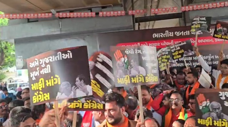 અમે ગુજરાતીઓ મૂર્ખ નથી! : મલ્લિકાર્જુન ખડગેએ ગુજરાતીઓને 'અભણ' કહેતાં ભાજપના કાર્યકરોનો રોષ, અમદાવાદમાં માફીની માંગ સાથે BJPનો વિરોધ પ્રદર્શન