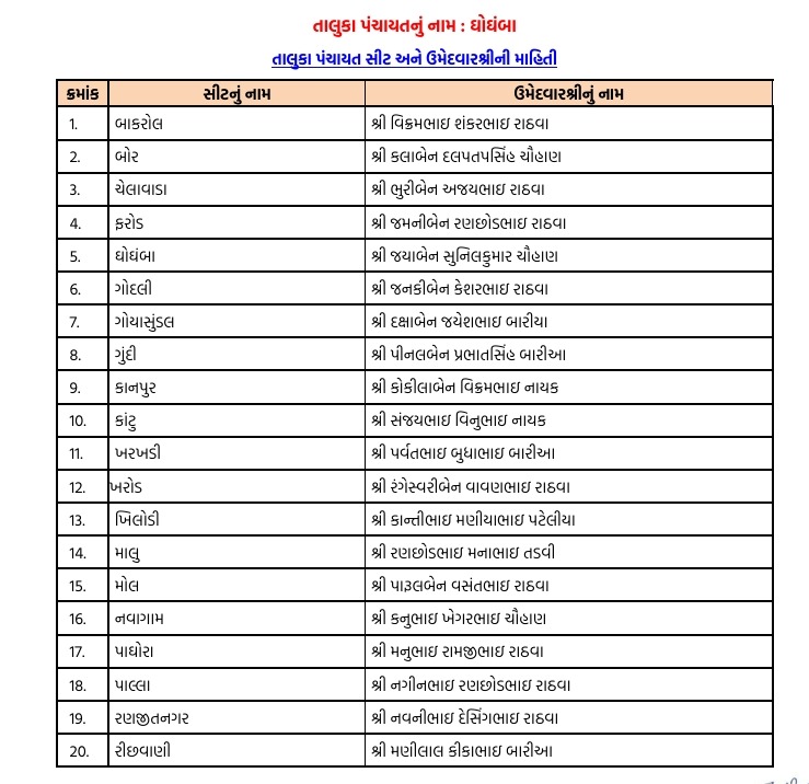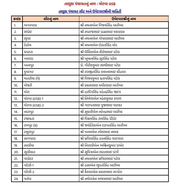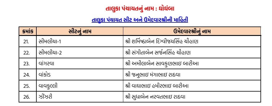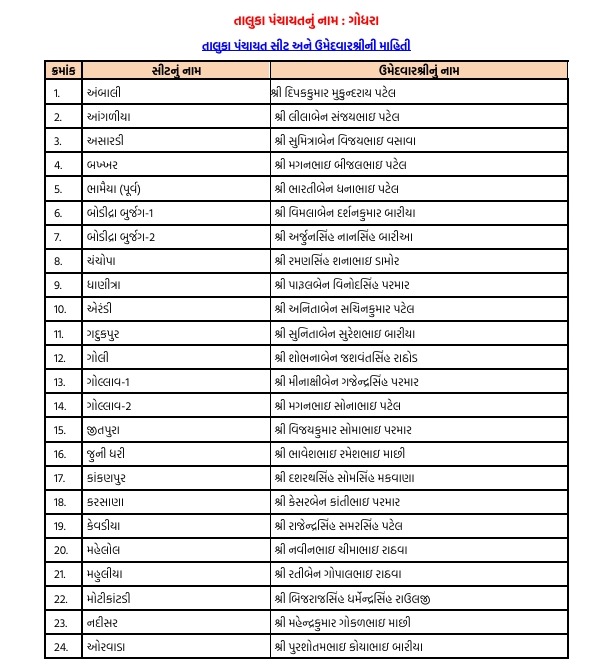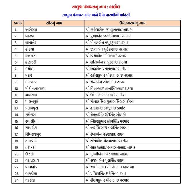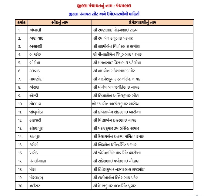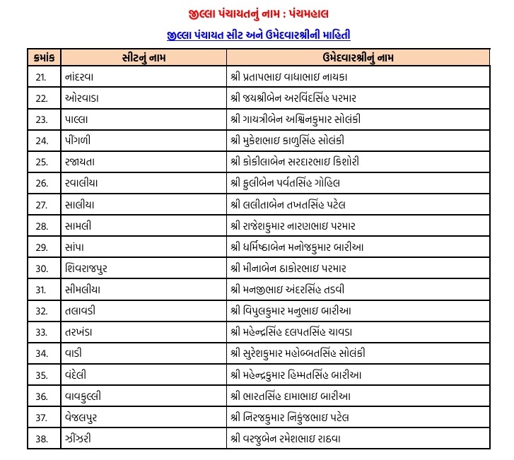 પંચમહાલ જિલ્લામાં ચૂંટણીનો જંગ જામ્યો : 7 તાલુકા પંચાયત અને બે નગરપાલિકા માટે ભાજપના ઉમેદવારોના નામ જાહેર, જુઓ સંપૂર્ણ યાદી....