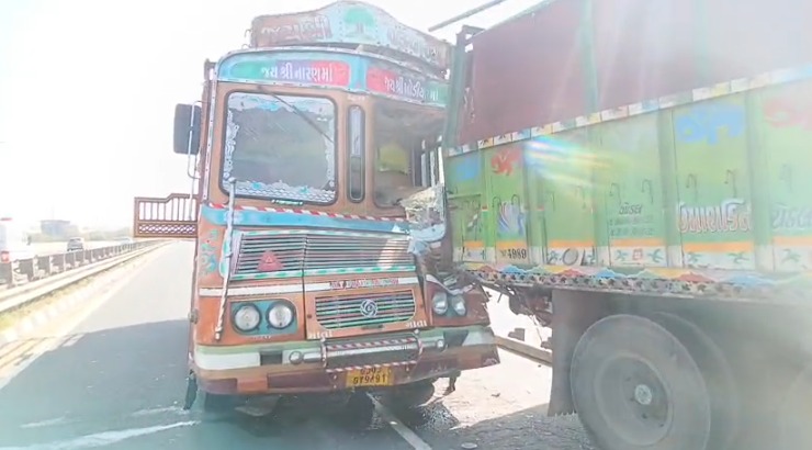 રાજકોટ-અમદાવાદ હાઈવે પર અકસ્માત, કુવાડવા GIDC પાસે બે ટ્રકો વચ્ચે જોરદાર ટક્કર...