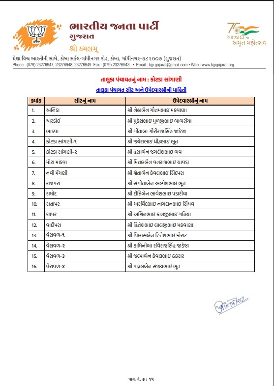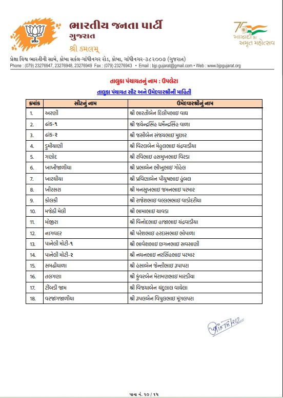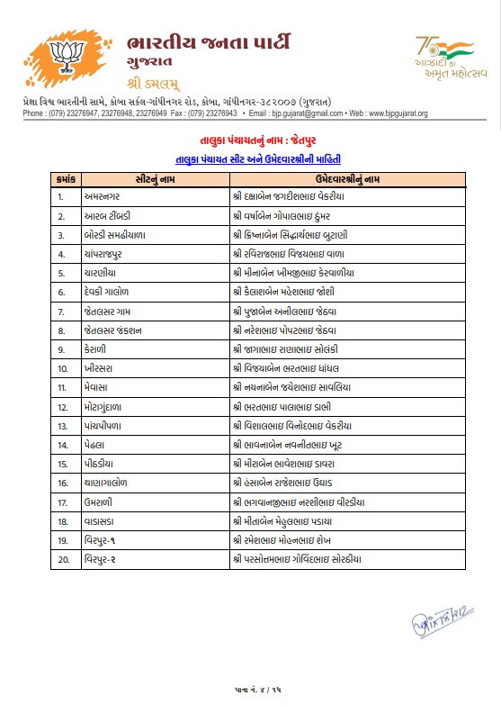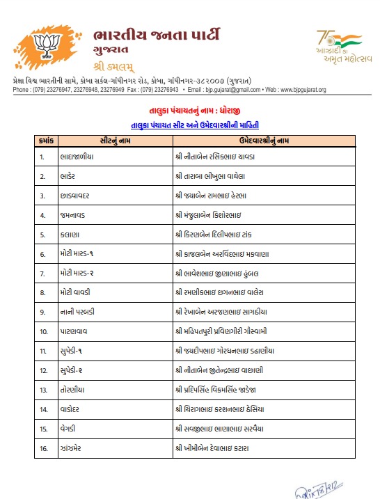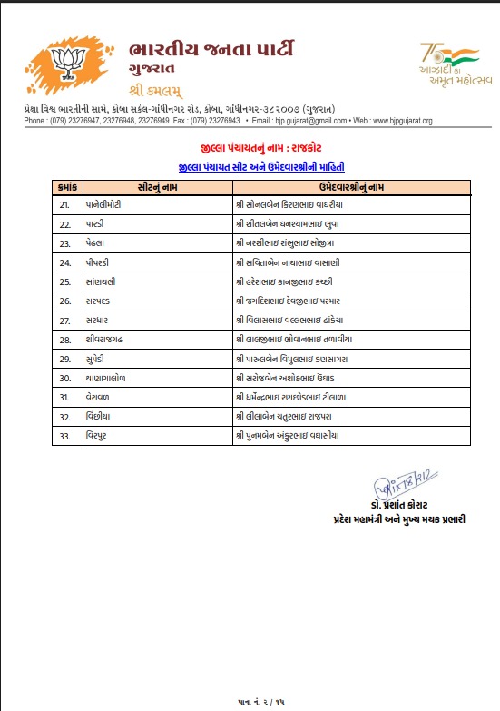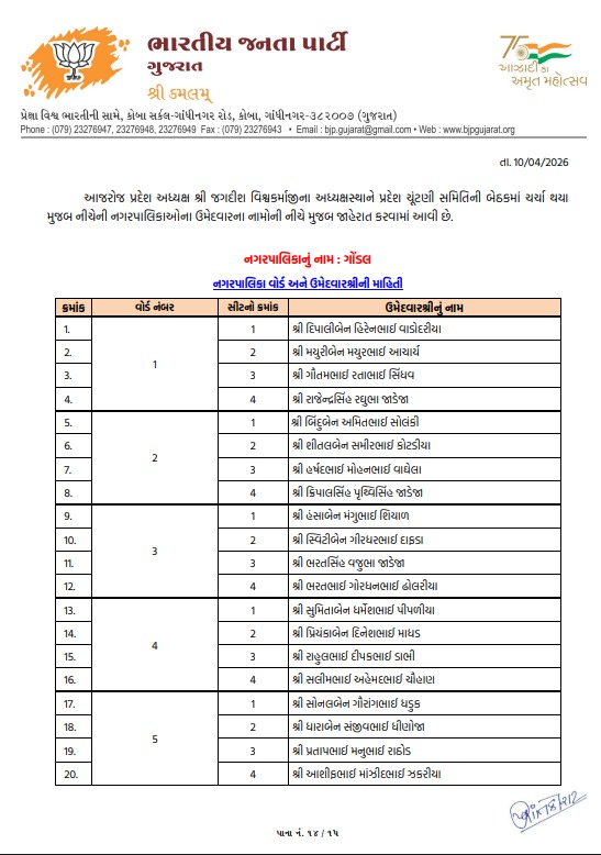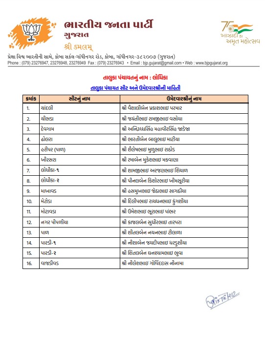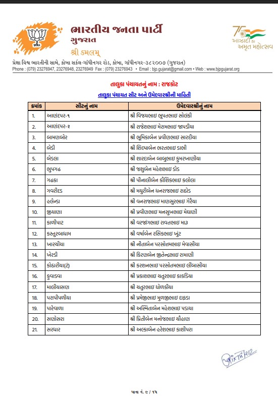 ટિકિટ માટે મથામણનો અંત: રાજકોટ જિલ્લા પંચાયત અને લોધિકા તાલુકા પંચાયતમાં શીતલ ભુવાને ટિકિટ અપાઇ, જુઓ ઉમેદવારોનું લિસ્ટ...