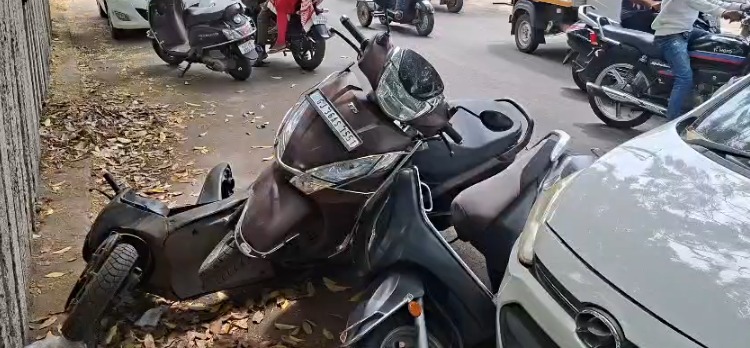 રાજકોટના પોશ ગણાતા આમ્રપાલી ફાટક વિસ્તારમાં આવેલી શ્રેયસ સોસાયટીમાં આજે બપોરના સમયે એક હૃદયદ્રાવક અકસ્માત સર્જાતા સમગ્ર વિસ્તારમાં ચકચાર મચી ગઈ હતી. પૂરપાટ ઝડપે આવી રહેલી એક લક્ઝુરિયસ મર્સિડીઝ કારના ચાલકે સ્ટીયરિંગ પરથી કાબૂ ગુમાવતા માર્ગ પર ઉભેલા અને પસાર થતા વાહનોને પોતાની અડફેટે લીધા હતા. જાણે કોઈ ફિલ્મી દ્રશ્ય હોય તેમ, બેકાબૂ બનેલી આ મર્સિડીઝે એક પછી એક ત્રણ એક્ટિવા અને બે અન્ય કારને જોરદાર ટક્કર મારી હતી. આ એક્ટિવા રસ્તા પર પાર્ક કરેલી હતી. જેનાથી મોટી જાનહાનિ ટળી છે. અકસ્માત એટલો ભીષણ હતો કે એક્ટિવાનો કુરચો બોલી ગયો હતો