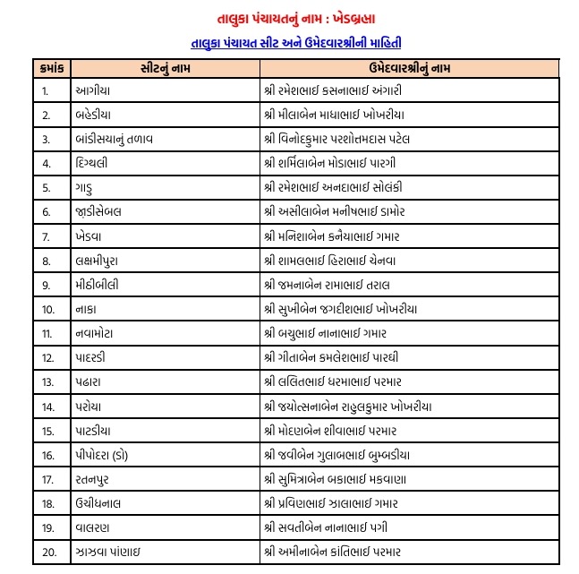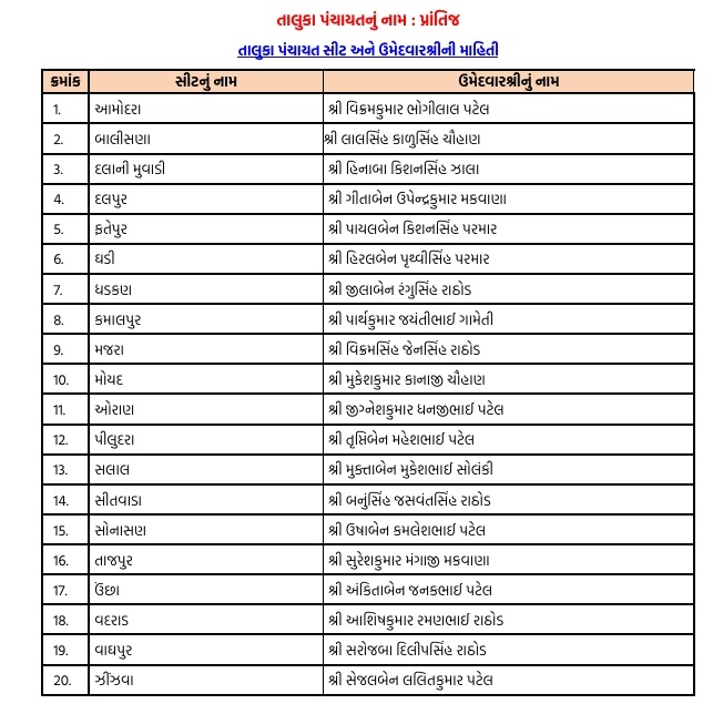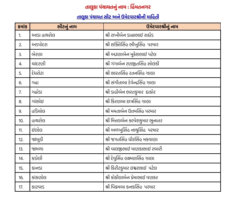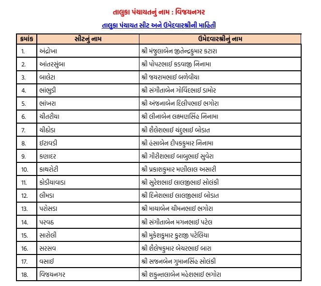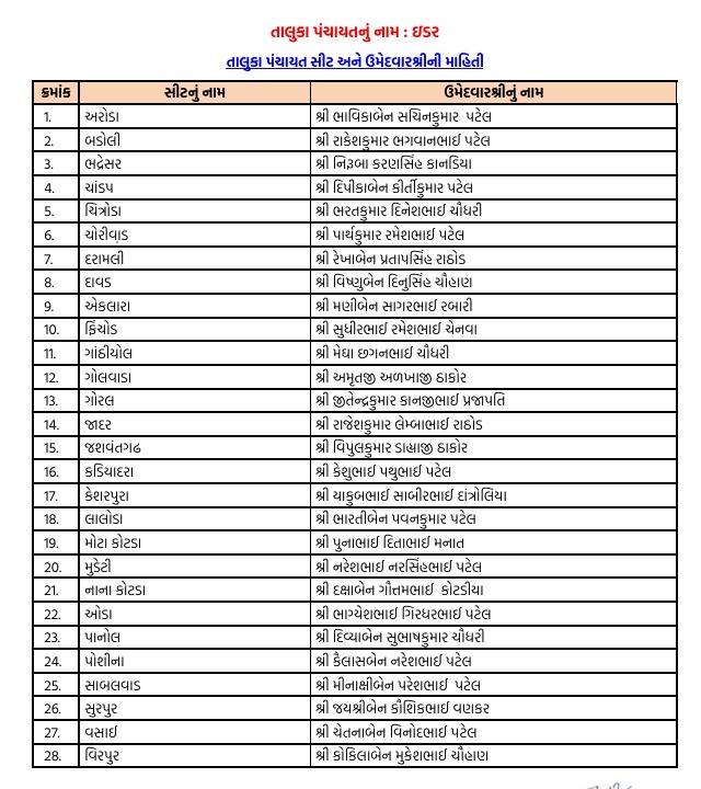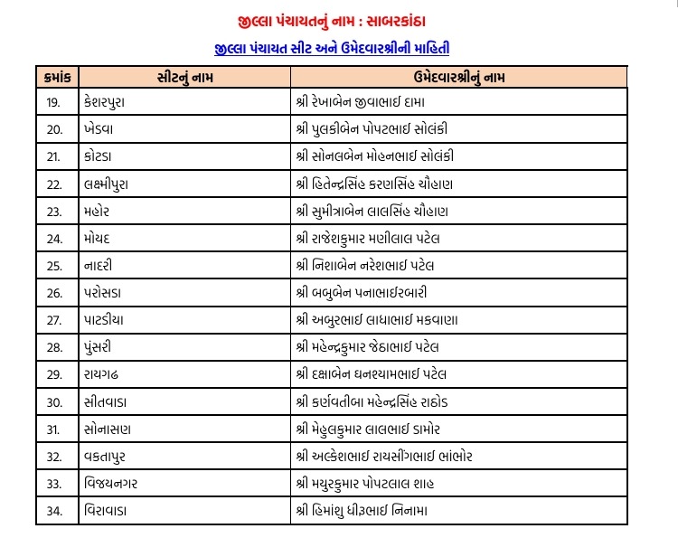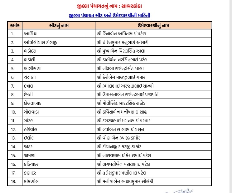 સસ્પેન્સનો અંત, આ ચહેરાઓ અપાવશે ભાજપને જીત? સાબરકાંઠા જિલ્લા અને તાલુકા પંચાયતની ચૂંટણી માટે ભાજપે પોતાના ઉમેદવારો જાહેર કર્યા....