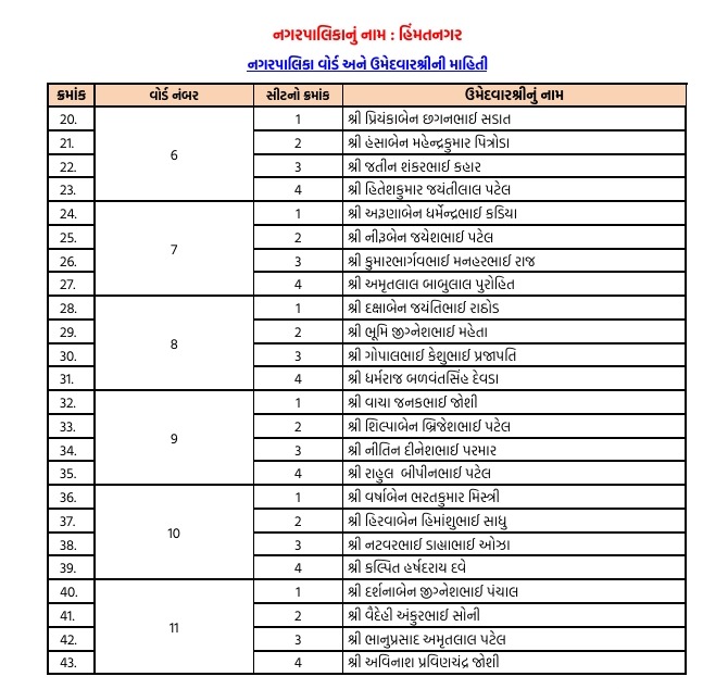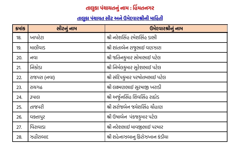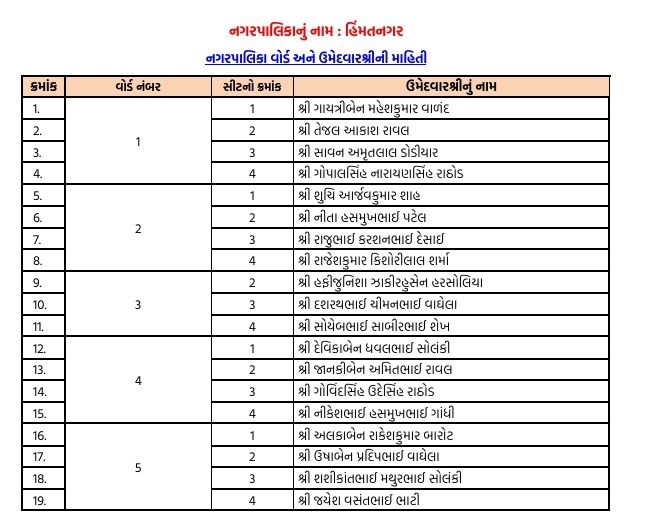 ચૂંટણીના આ ધમધમાટ વચ્ચે માત્ર જિલ્લા પંચાયત જ નહીં, પરંતુ તાલુકા પંચાયત અને નગરપાલિકાઓ માટે પણ પક્ષે પોતાના પત્તા ખોલી દીધા છે. હિંમતનગર, તલોદ, ઇડર, ખેડબ્રહ્મા, વિજયનગર, વડાલી, પ્રાંતિજ અને પોષીના જેવી મહત્વની તાલુકા પંચાયતોમાં પક્ષે નવા અને જૂના ચહેરાઓનું સંતુલન જાળવવાનો પ્રયાસ કર્યો છે. સાથોસાથ હિંમતનગર, વડાલી અને ઇડર જેવી અગત્યની નગરપાલિકાઓ માટે પણ ઉમેદવારોના નામ જાહેર થતાની સાથે જ રાજકીય માહોલ ગરમાયો છે. ‘કમલમ’ ખાતે લેવાયેલા આ નિર્ણયો બાદ હવે તમામ ઉમેદવારો પોતાના સમર્થકો સાથે પ્રચારના મેદાનમાં ઉતરી જશે. ભાજપ દ્વારા વહેલી તકે ઉમેદવારોના નામ જાહેર કરી દેવામાં આવતા અન્ય રાજકીય પક્ષોમાં પણ દોડધામ મચી ગઈ છે અને સ્થાનિક સ્તરે હવે ચૂંટણીનો જંગ ખરાખરીનો બનશે તે નક્કી છે.