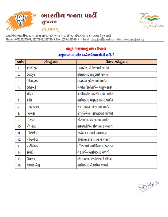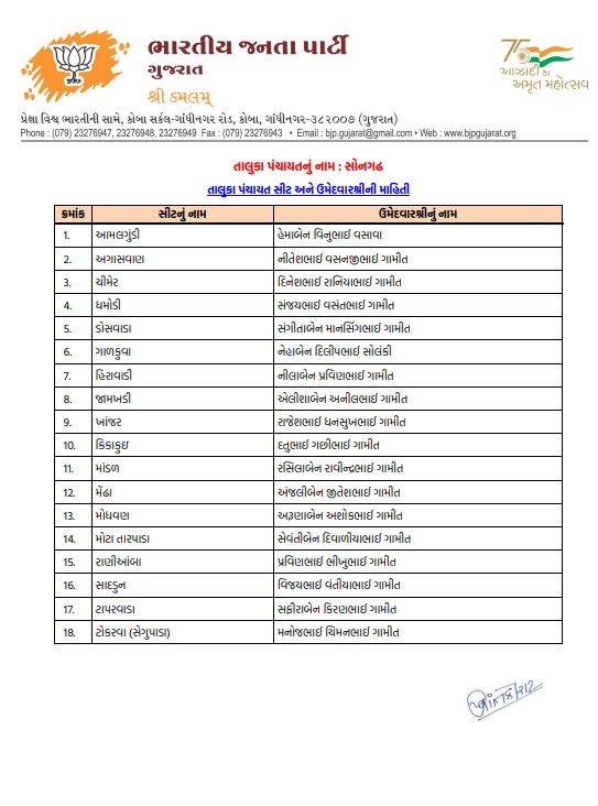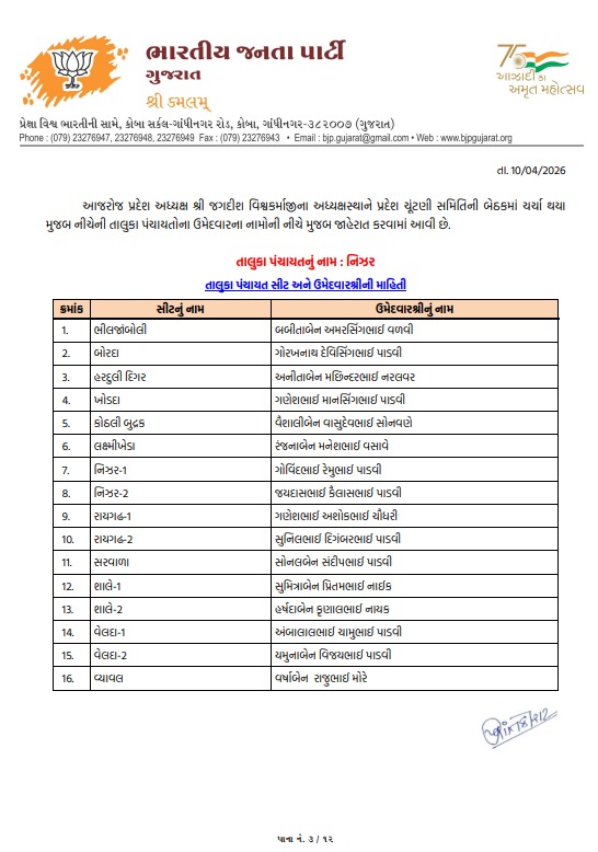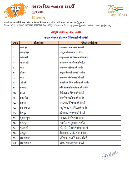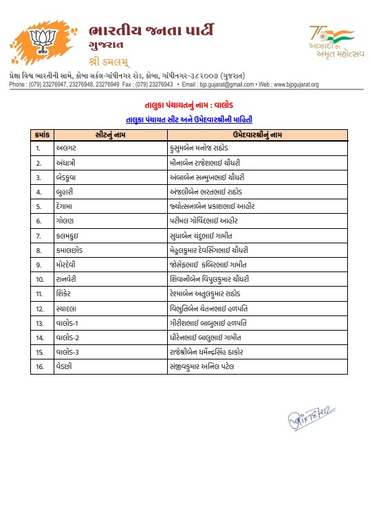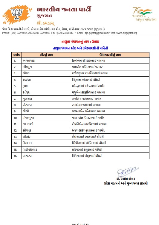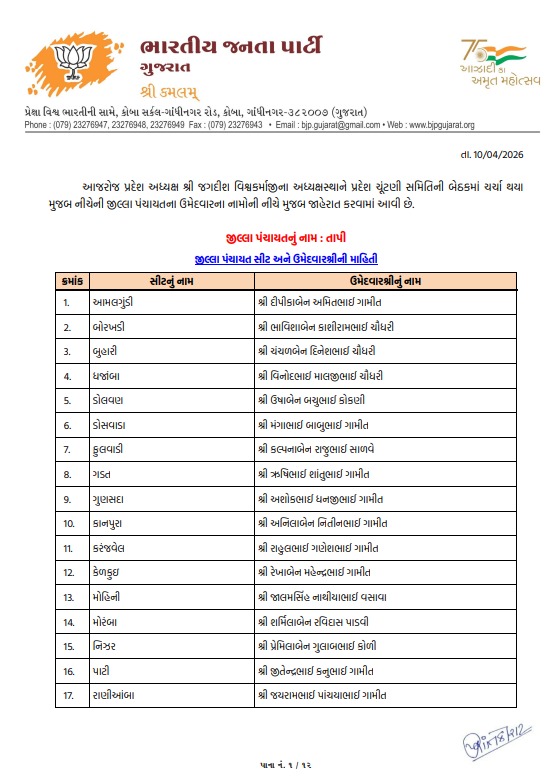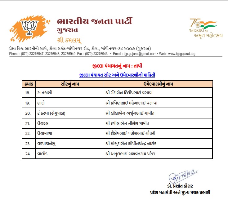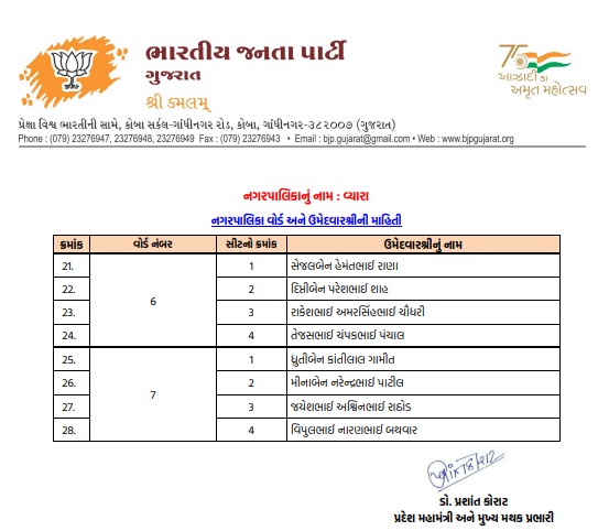 તાપી મહાનગરપાલિકા માટે ભાજપે તૈયાર કરી વિનિંગ ટીમ, જુઓ કોને કયા વોર્ડમાં મળી એન્ટ્રી